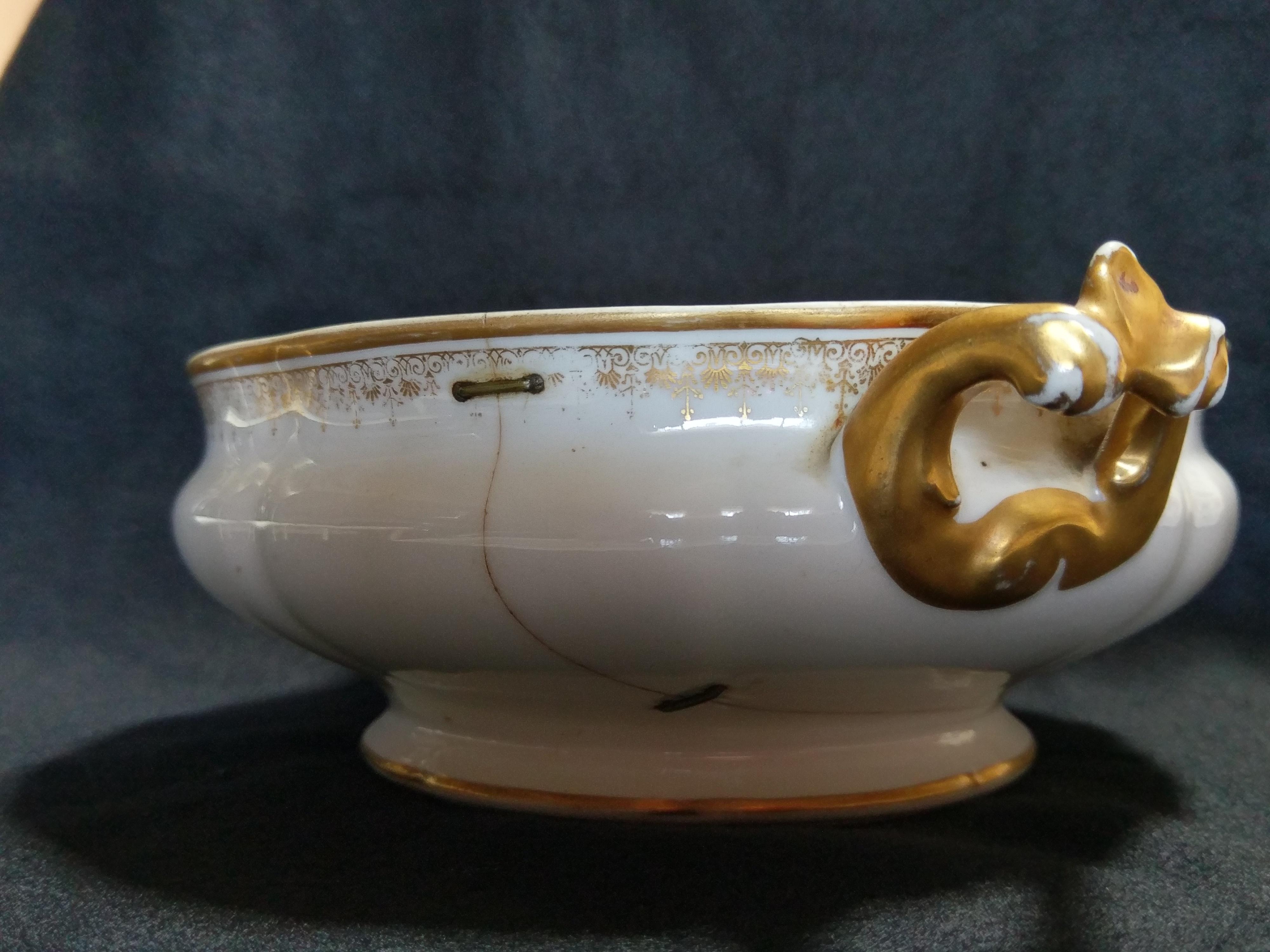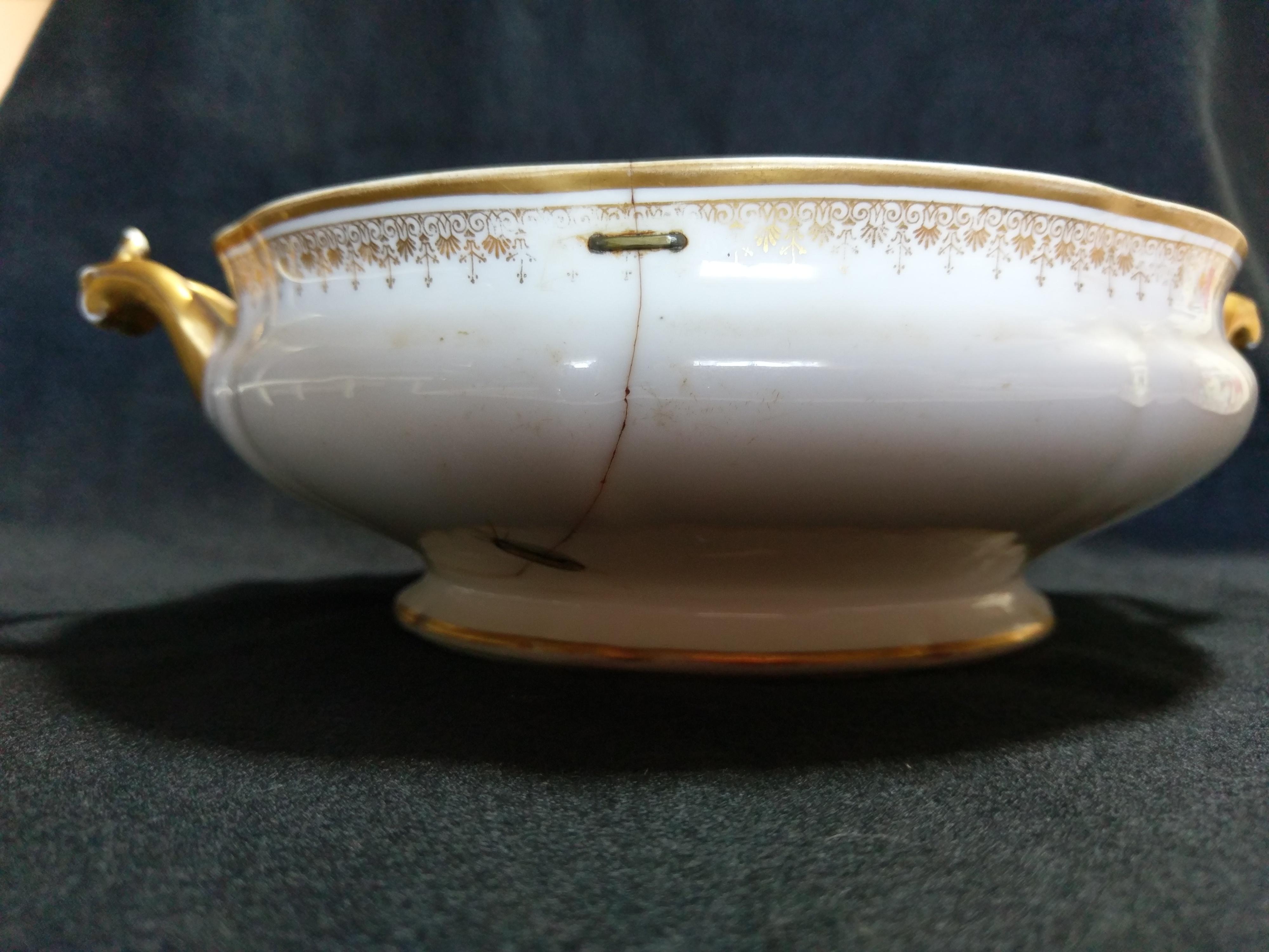Antique Dish Repaired with staples
