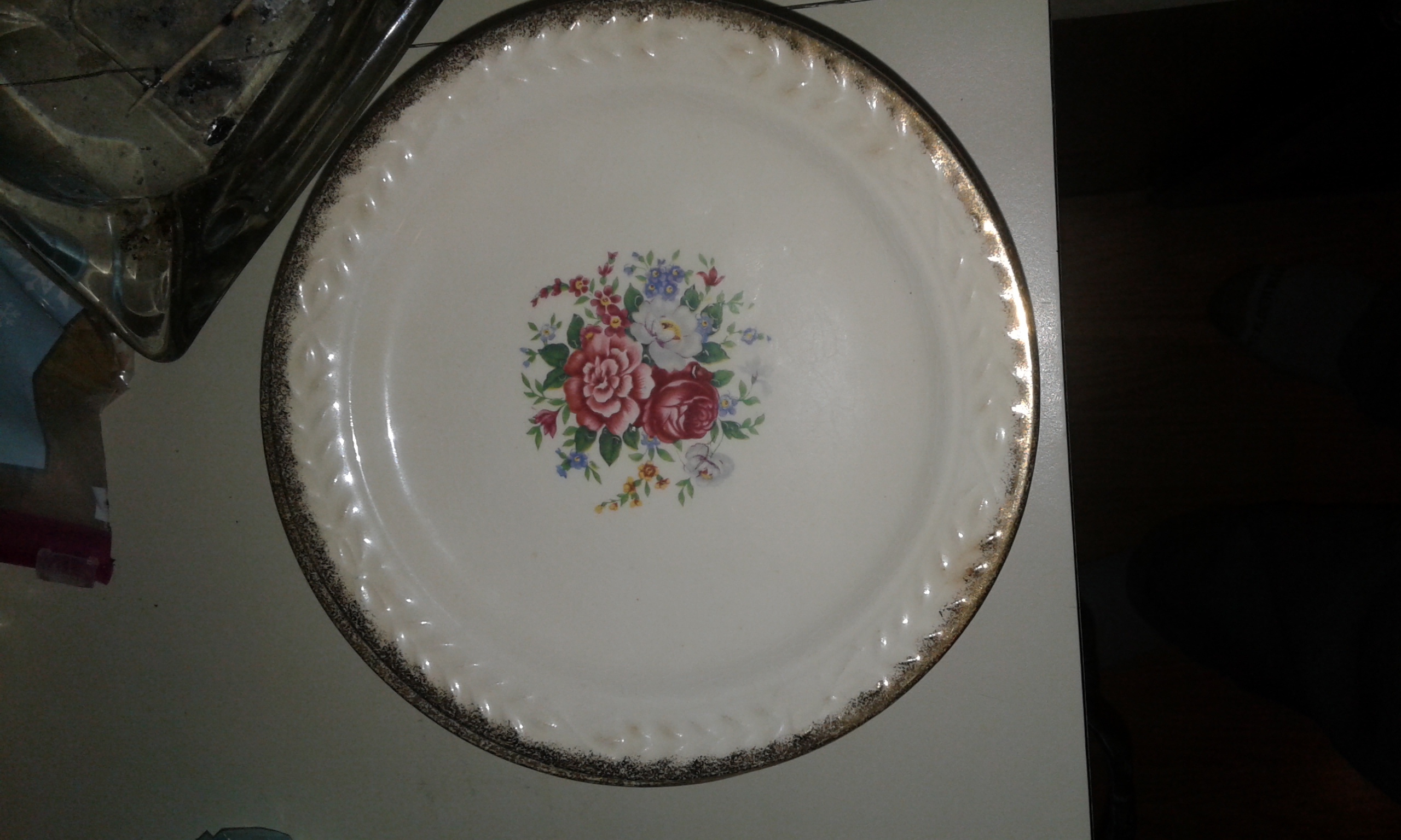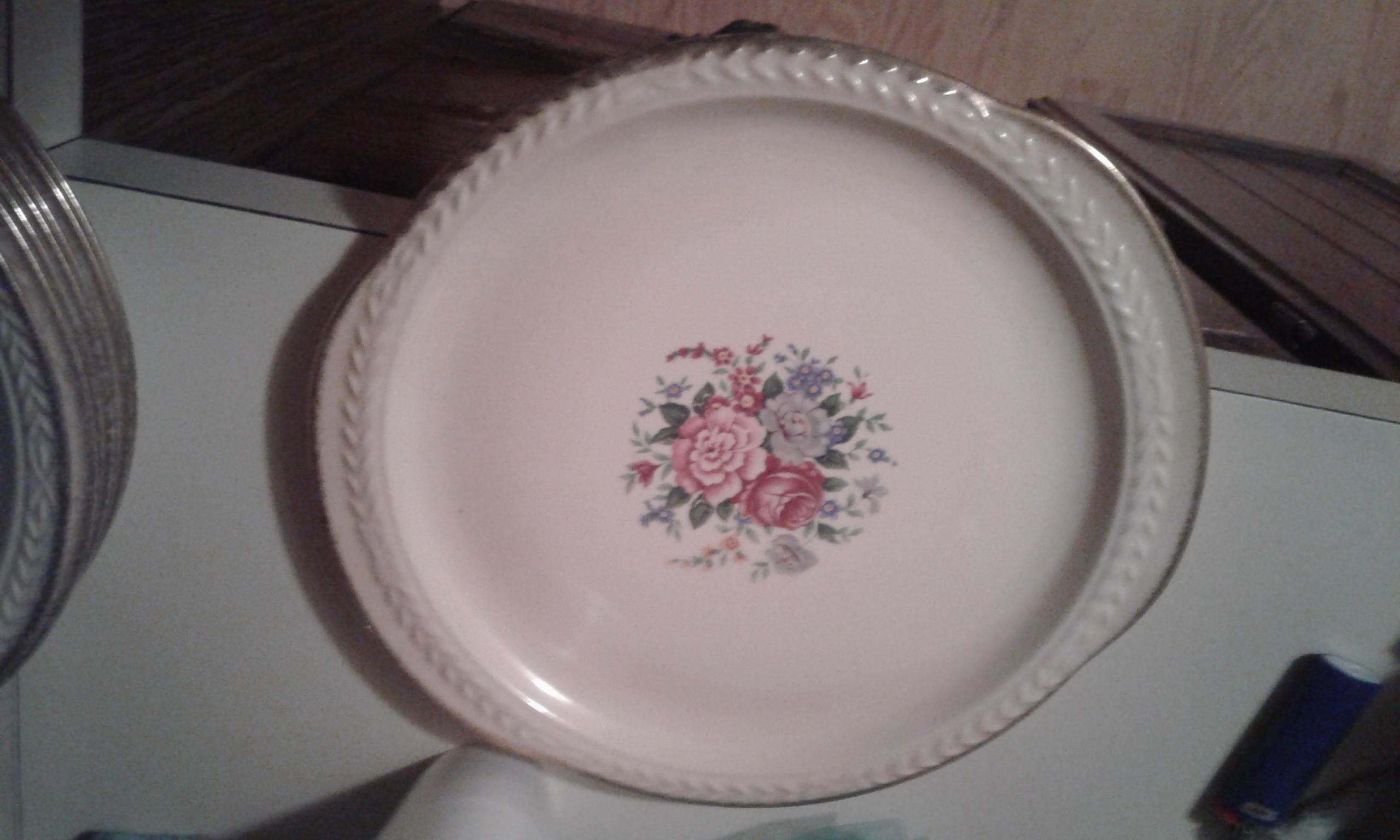 LAURELLA /. UNIVERSAL / CAMBRIDGE . WARRANTED 22 CARAT GOLD. OVEN PROOF. MADE IN USA 8-10". 8- 7". 8-6" PLATES 7-5 1/2" BOWLS. 5 CUPS 1 CREAMER HOLDER CUP 1 - 11" plater