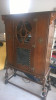 It dates from the early 1920's through the mid 1930's. These tend to be a mix of early English styles, which makes them look a lot older than they really are. These were made produced items and remain in large numbers to this day. The market is currently flooded with furniture like this due to the downsizing of the Baby Boomer generation and cleances of their own parent's estates. Sadly most cabinets comparable to this one tend to sell at auction for under $200.00.