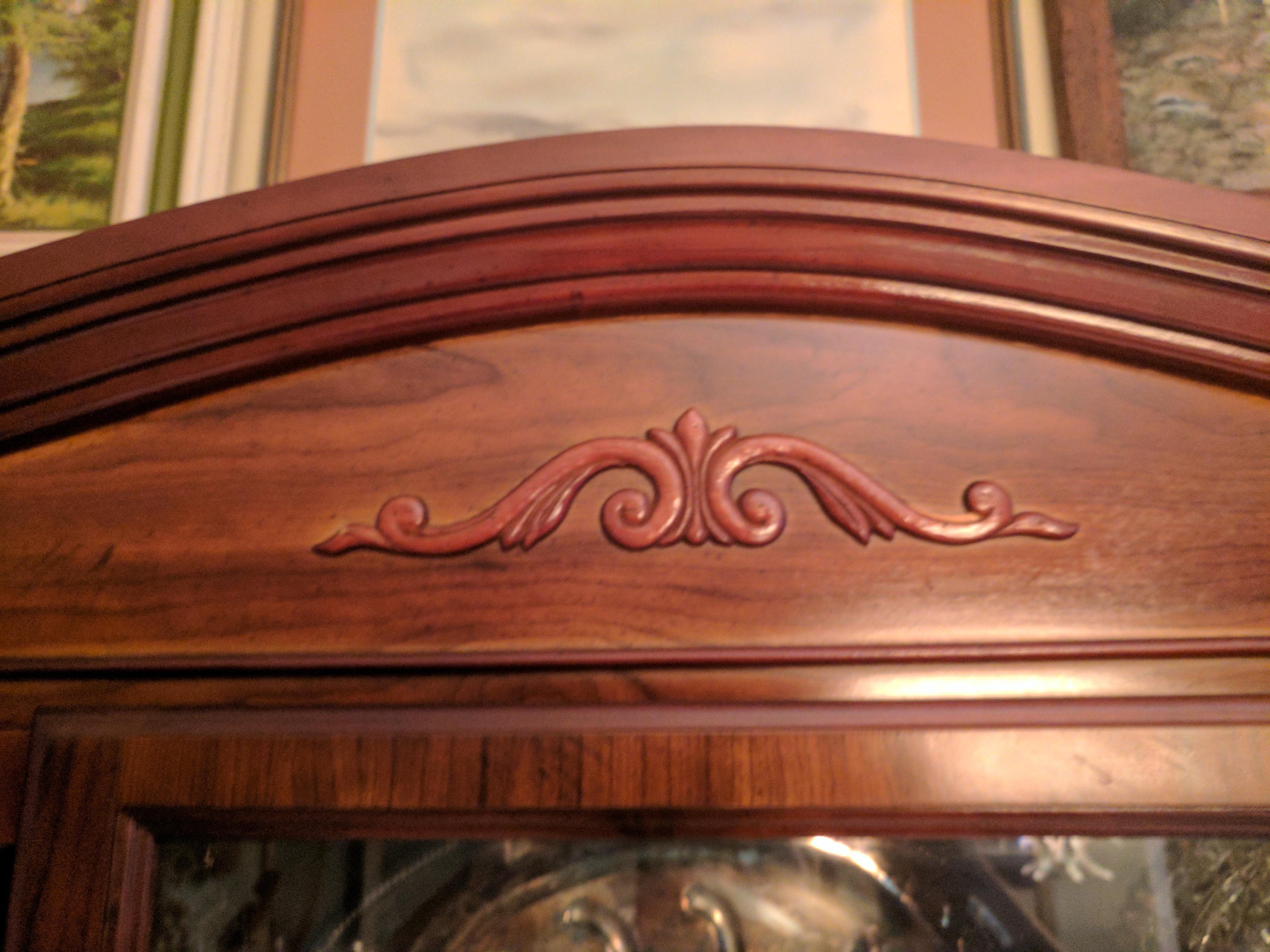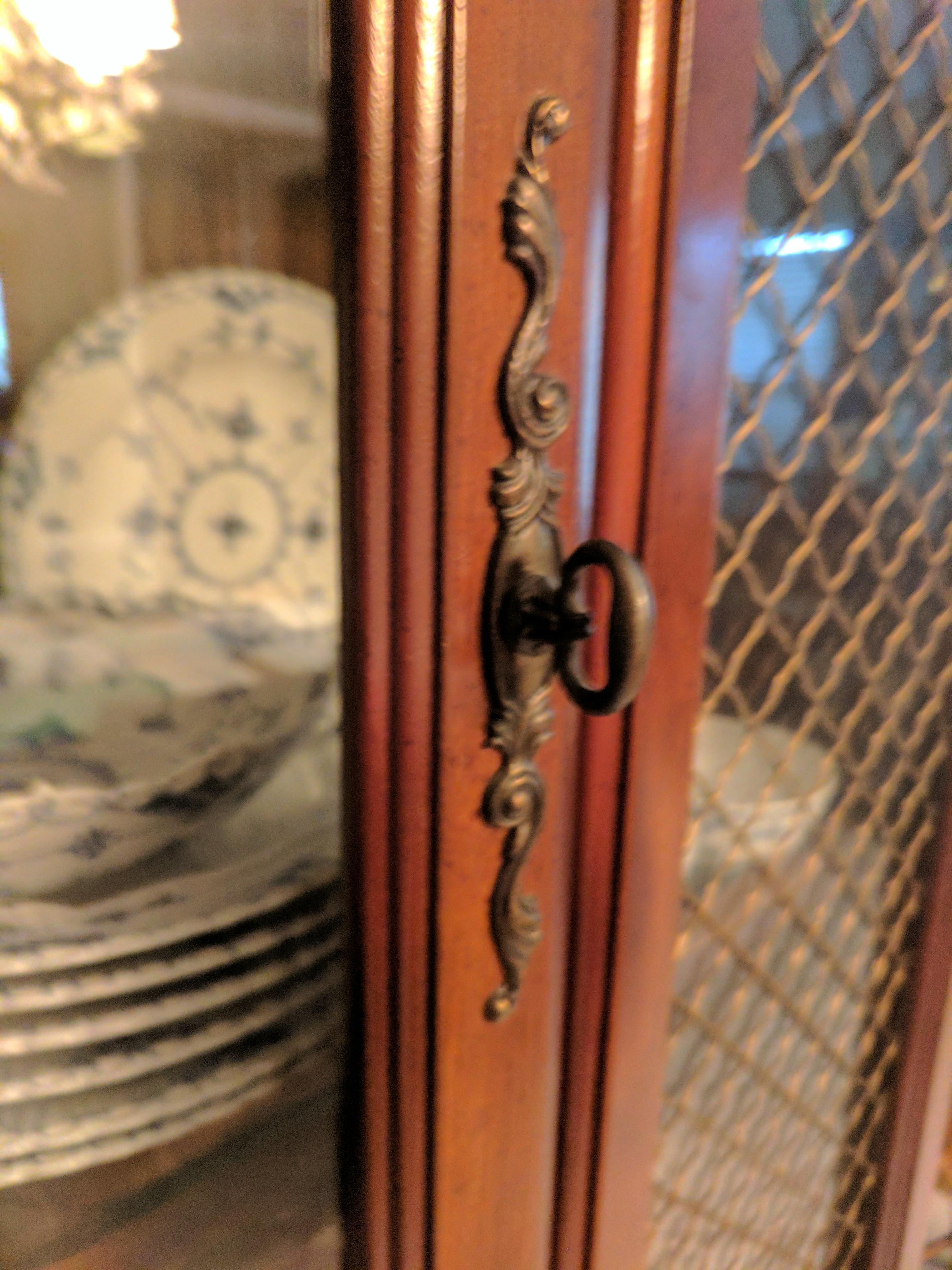 I inherited a good number of antique items and am currently in the process of figuring out their value. This is a display case in near-perfect condition. It is currently being used to hold a 54 piece set of Royal Copenhagen - Blue Fluted Full Lace china. Being that is a very high end fine china set, I have a good feeling the quality of the display case in question possibly matches the quality of the china. I have not been able to locate a makers mark but am not comfortable in trying to move the case to check on the back. Thank you in advance!