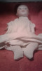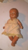 Composition doll with Dreamy Glass eyes, forehead curls, two front teeth. The doll has a button on the inside which indicates it made sounds at one time.