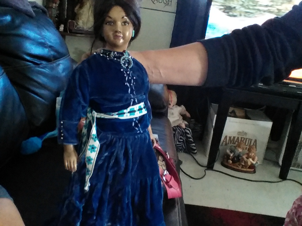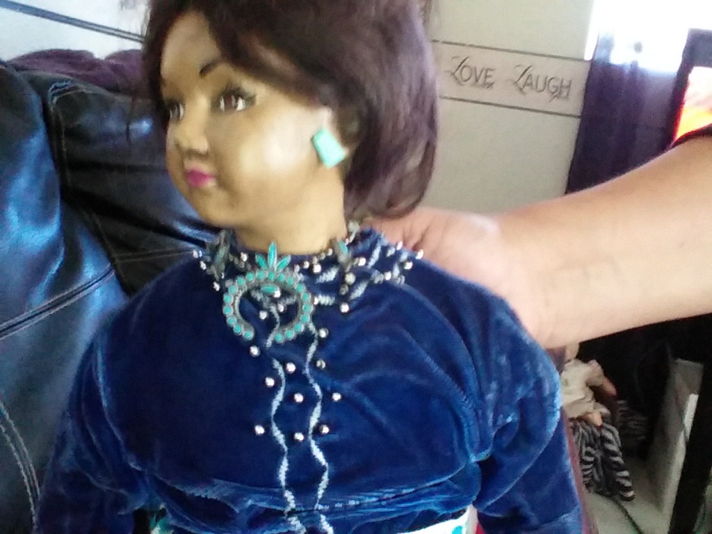 doll with necklace of turquoise earings very elegant dress extremely beautiful