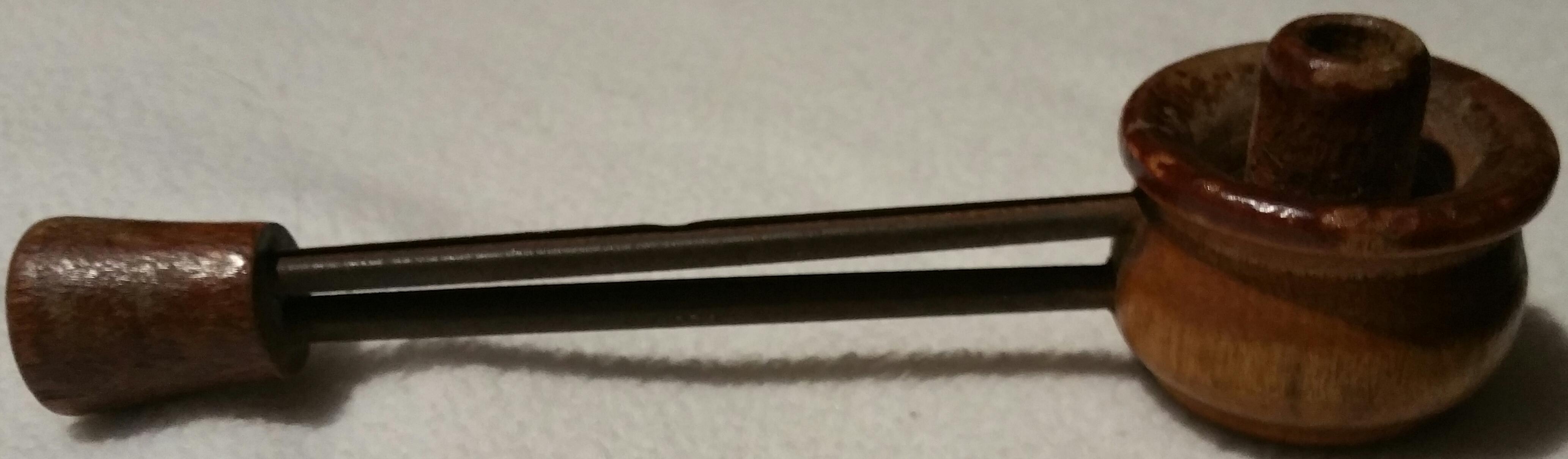 I have a very unique pipe here with no markings on it at all and I haven't been able to find any information or even a pipe online that has the same concept as this one. It has two parts to the bowl of the pipe in the middle it can be packed and it has its own pipeline down to the mouthpiece. On the outside of the bowl it has another area where you can see in the pictures where the other pipeline leads down to the mouthpiece. It has two holes at the end of the mouthpiece. If anyone can tell me any information about this pipe I will be very grateful.