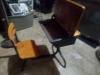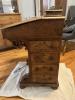 I know nothing about the desk. I think it's an antique, but I'm not certain. The legs have the company name on them and they were made in London. I've searched the internet looking for something similar, but haven't been able to find anything. The seat is attached in the front of the desk. Most of the wood is in great condition, the front right and back right of the desk are slightly damaged. The hinges to open the tops look original and the tops open and close easily.