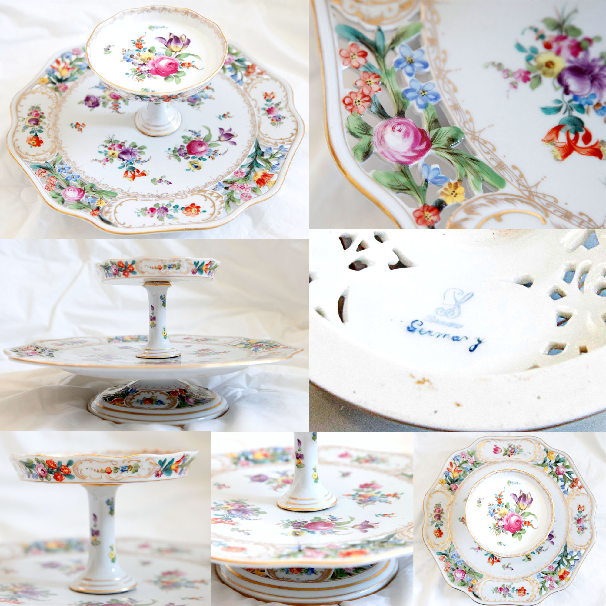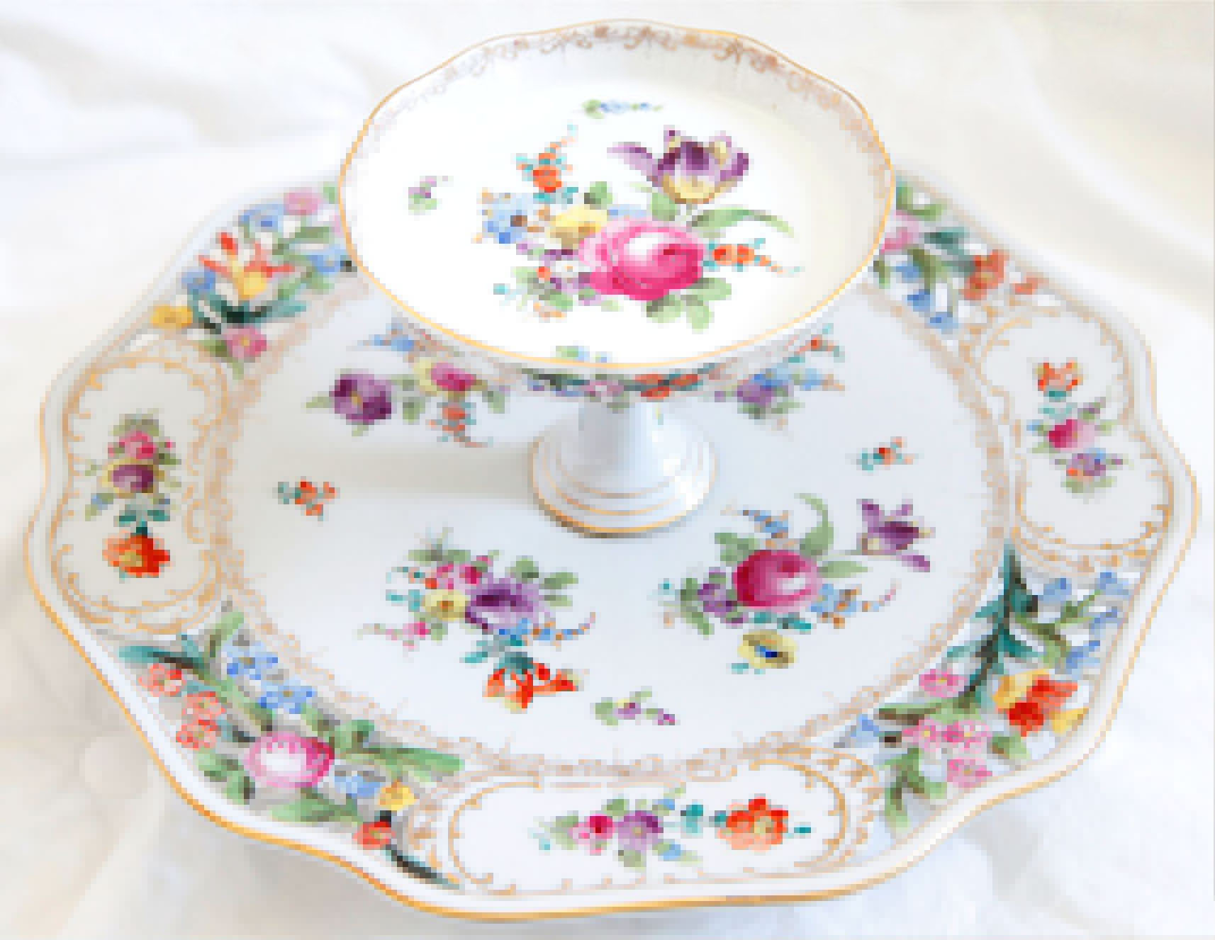 Re: Antique Dresden Germany Rose Tier Dish
