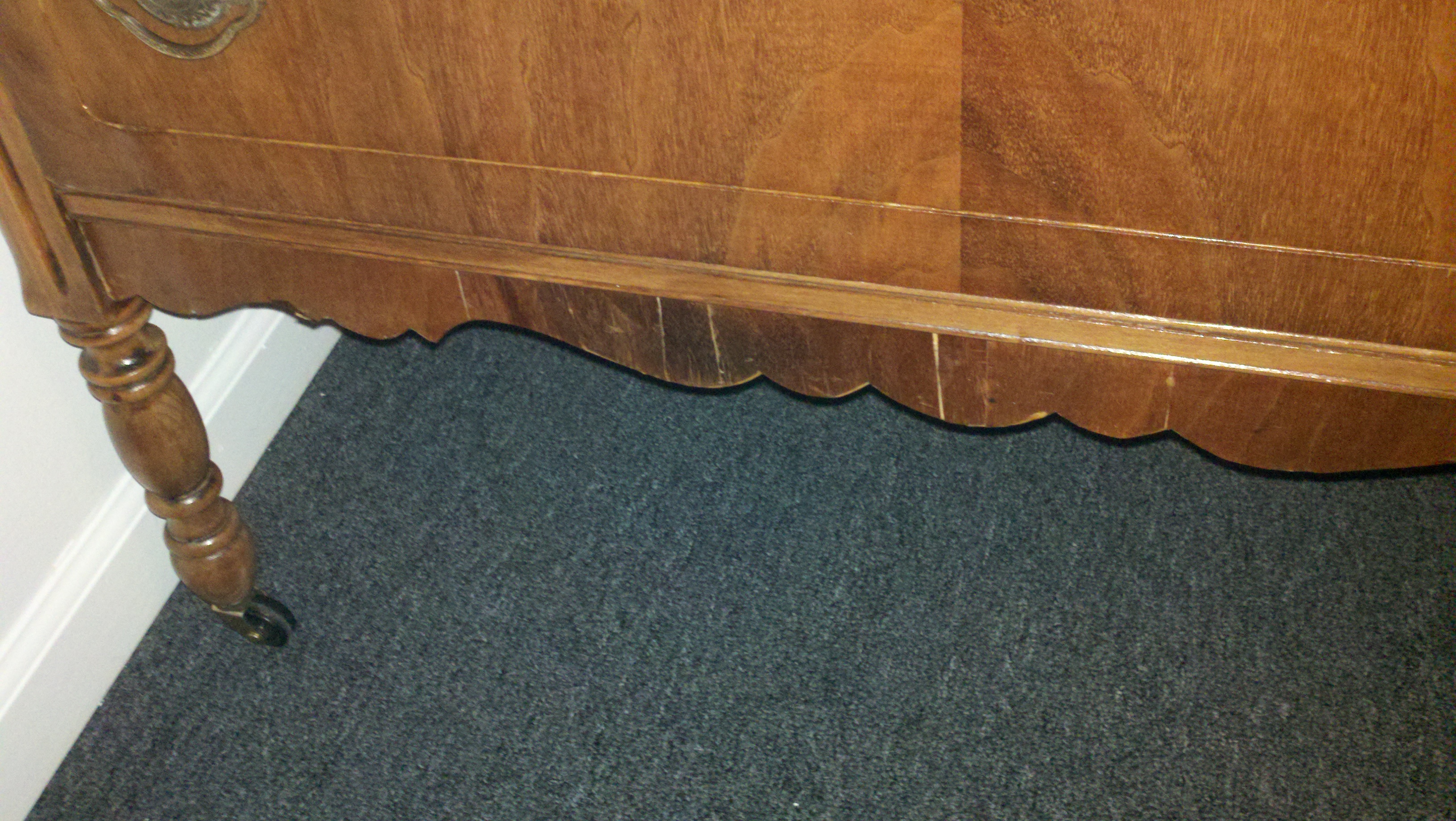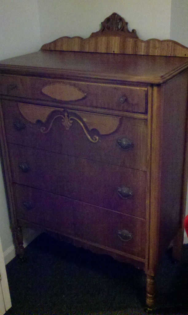 My grandparents gave me the dresser pictured below I am curious what it is worth. It has some damage and is a bit musty smelling from my grandparents basement. My grandfather also refinished the dresser. If more pictures are needed feel free to ask.