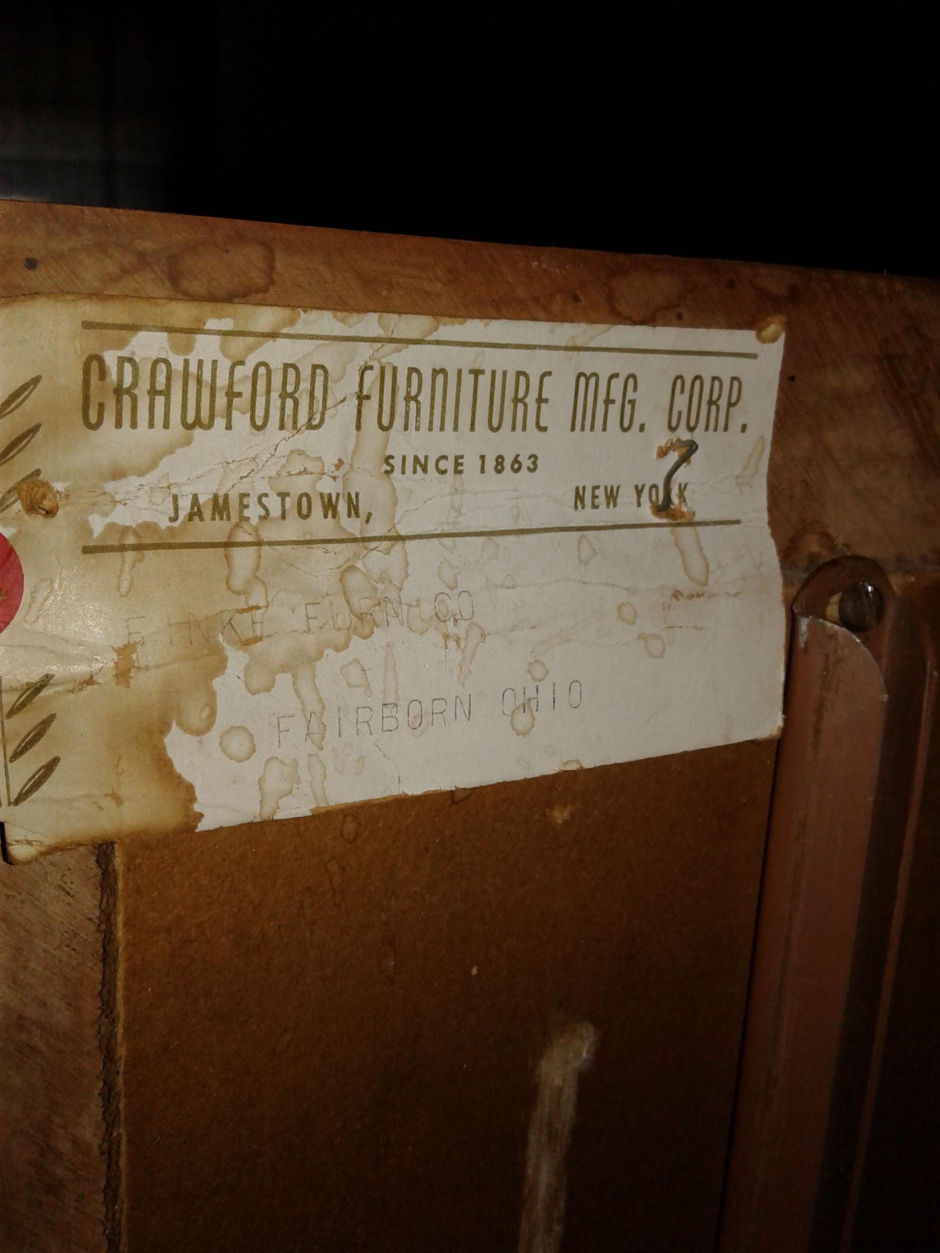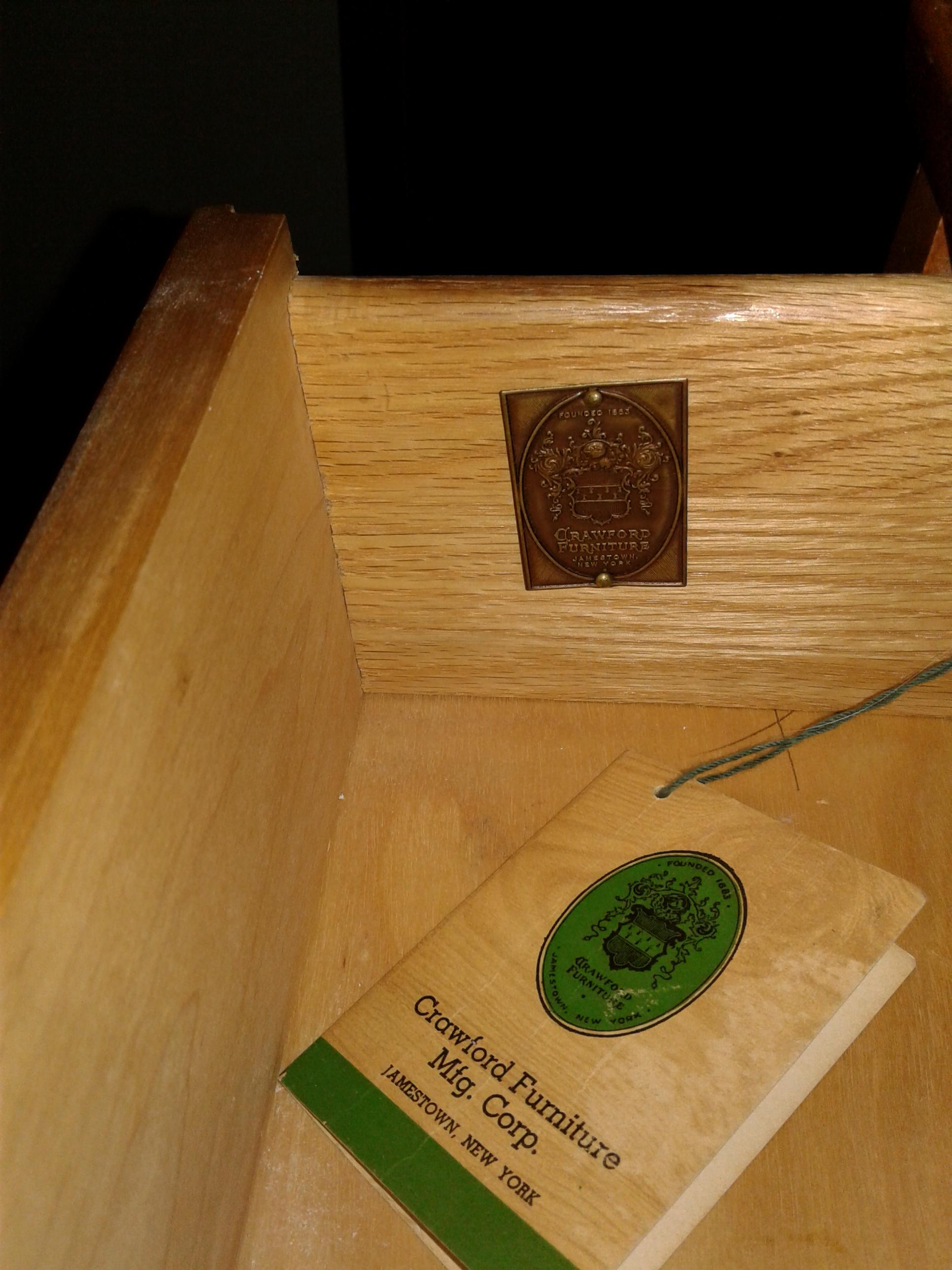 Description Blond furniture from company crawford furniture was founded in 1883 out of Jamestown ,New york solid wood
