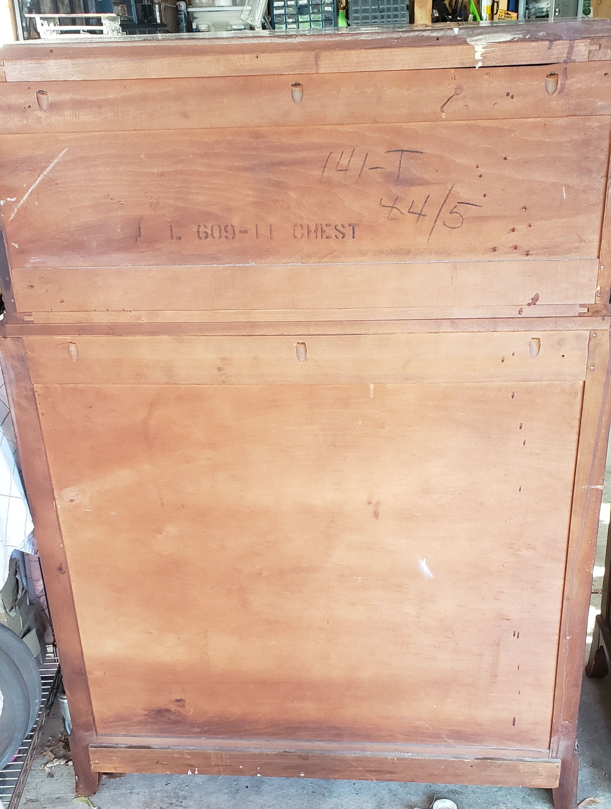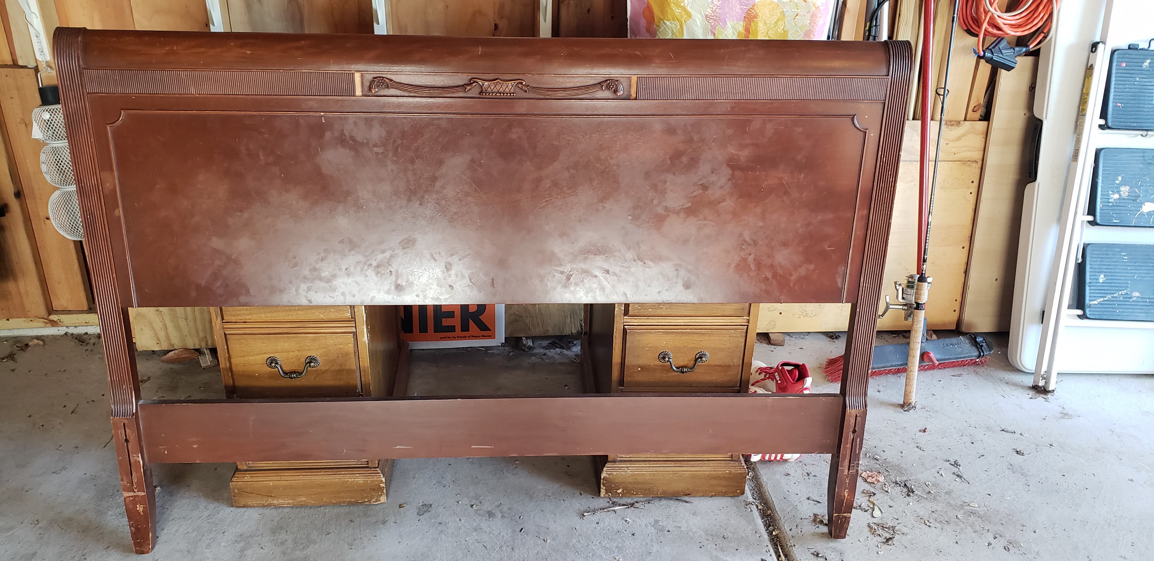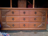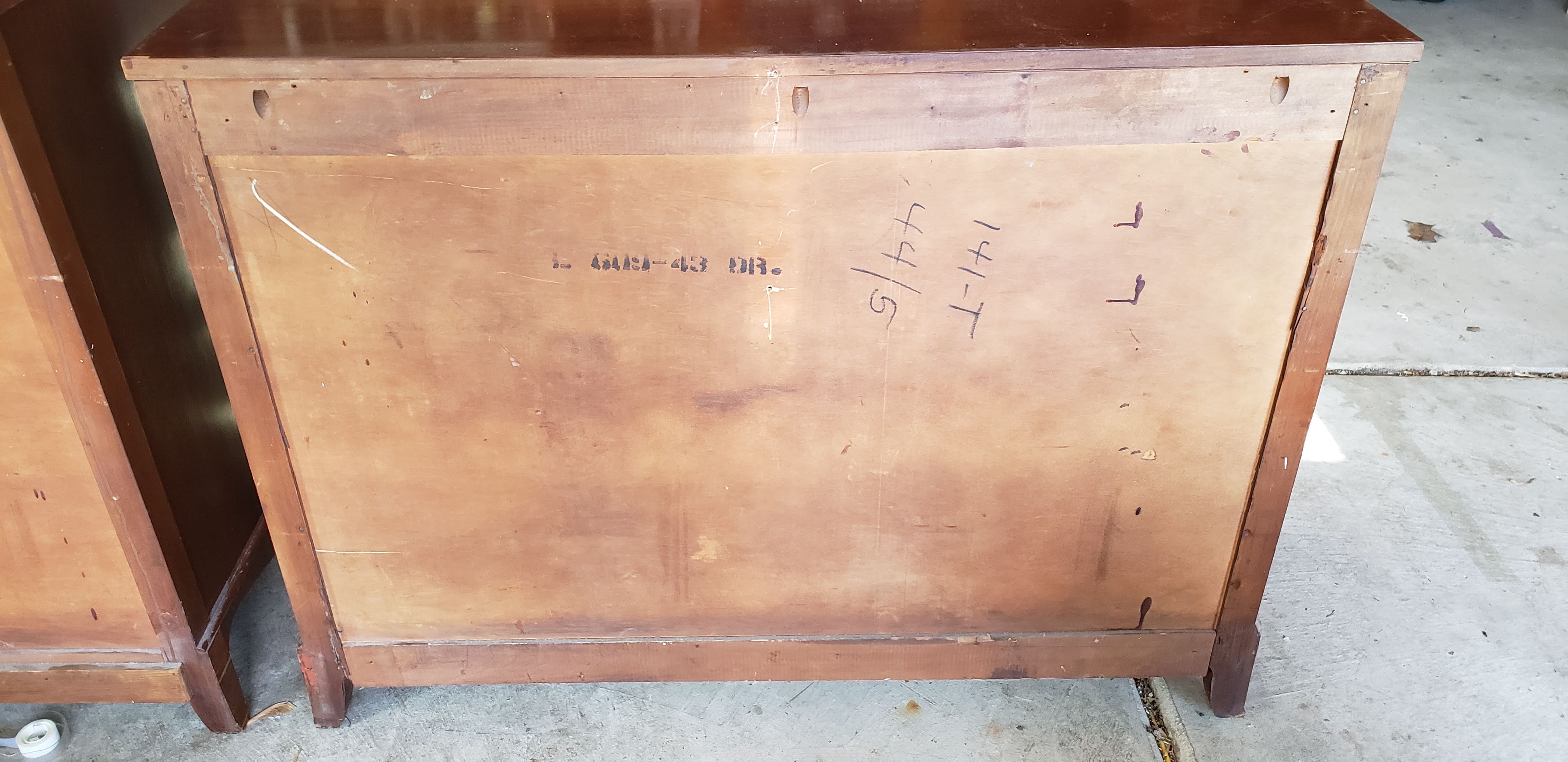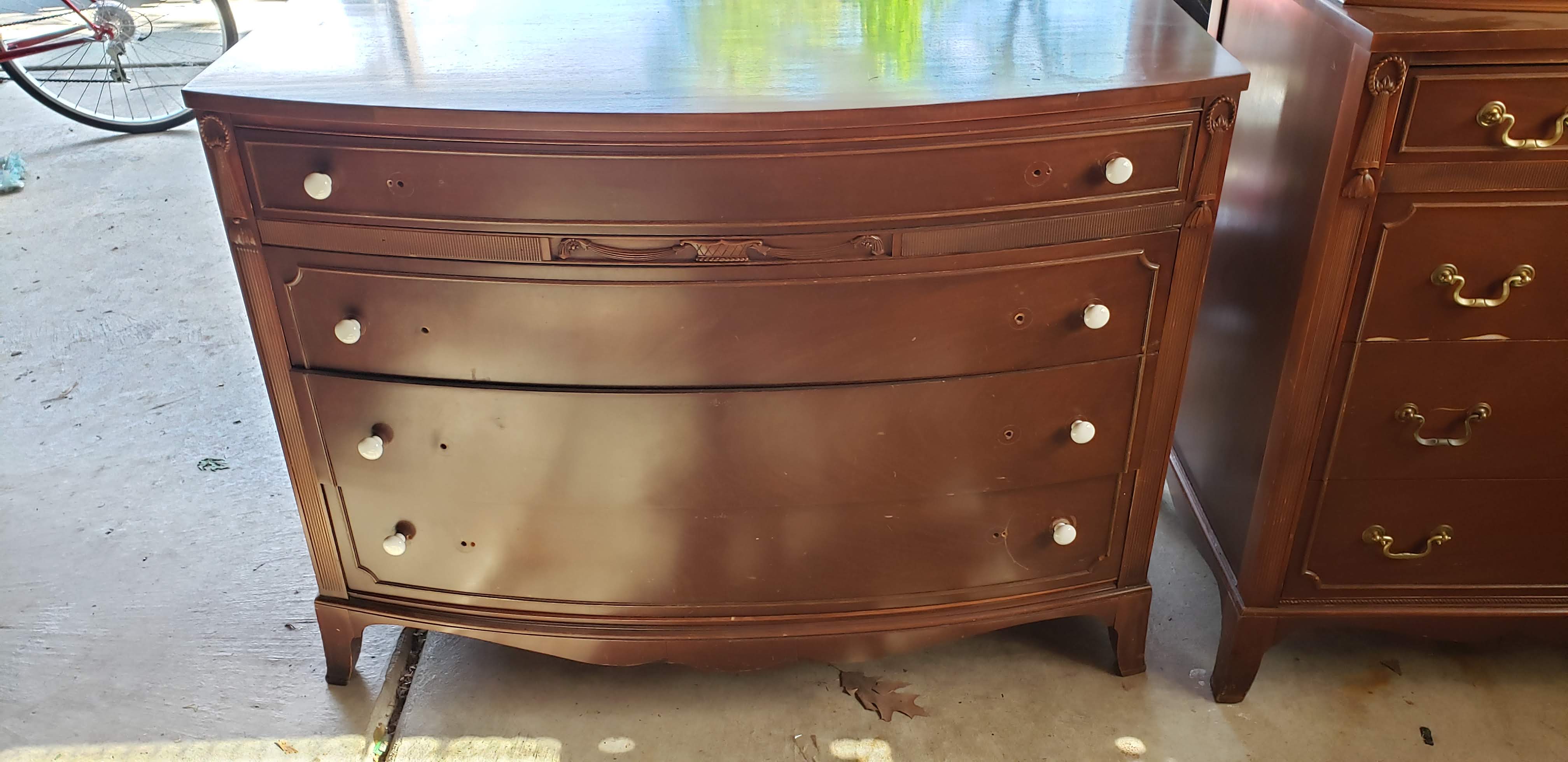 Chest, Dresser, Headboard, and Mirror from somewhere around 1930-1950. Solid, I believe Mahogany.