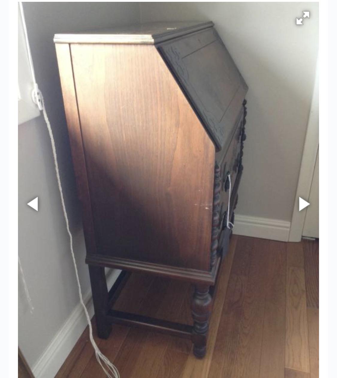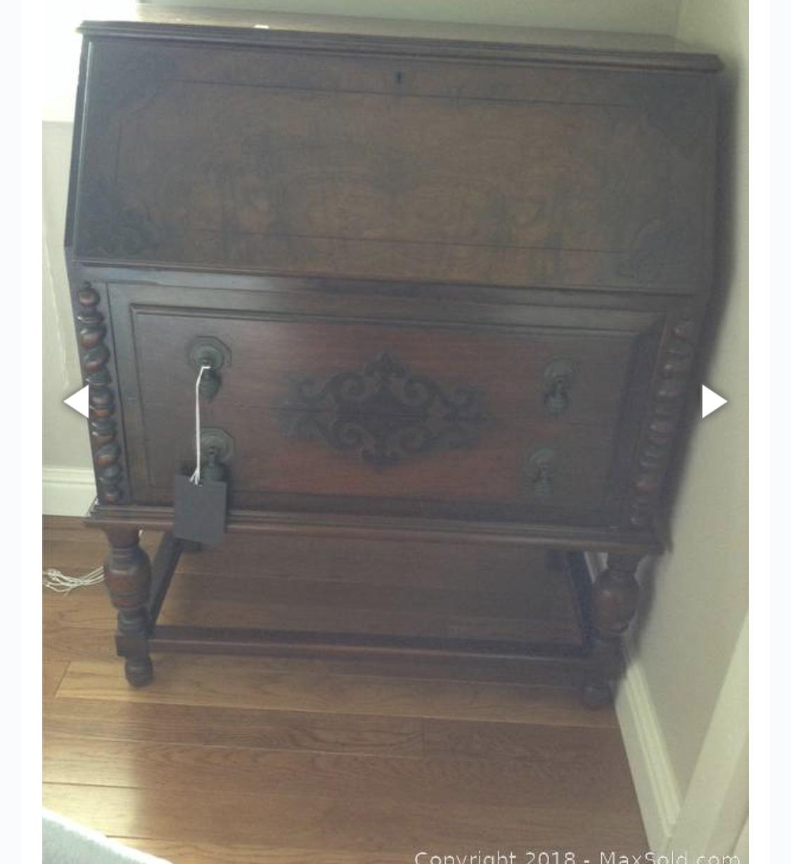 I have this Johnson Handley Johnson slanted drop front (secretary) desk. It has two drawers and the drop front desk which has two small drawers inside along with a bunch of little compartments. It also has the original skeleton key to lock the top desk part which is in working condition. Would like to know what this is worth.