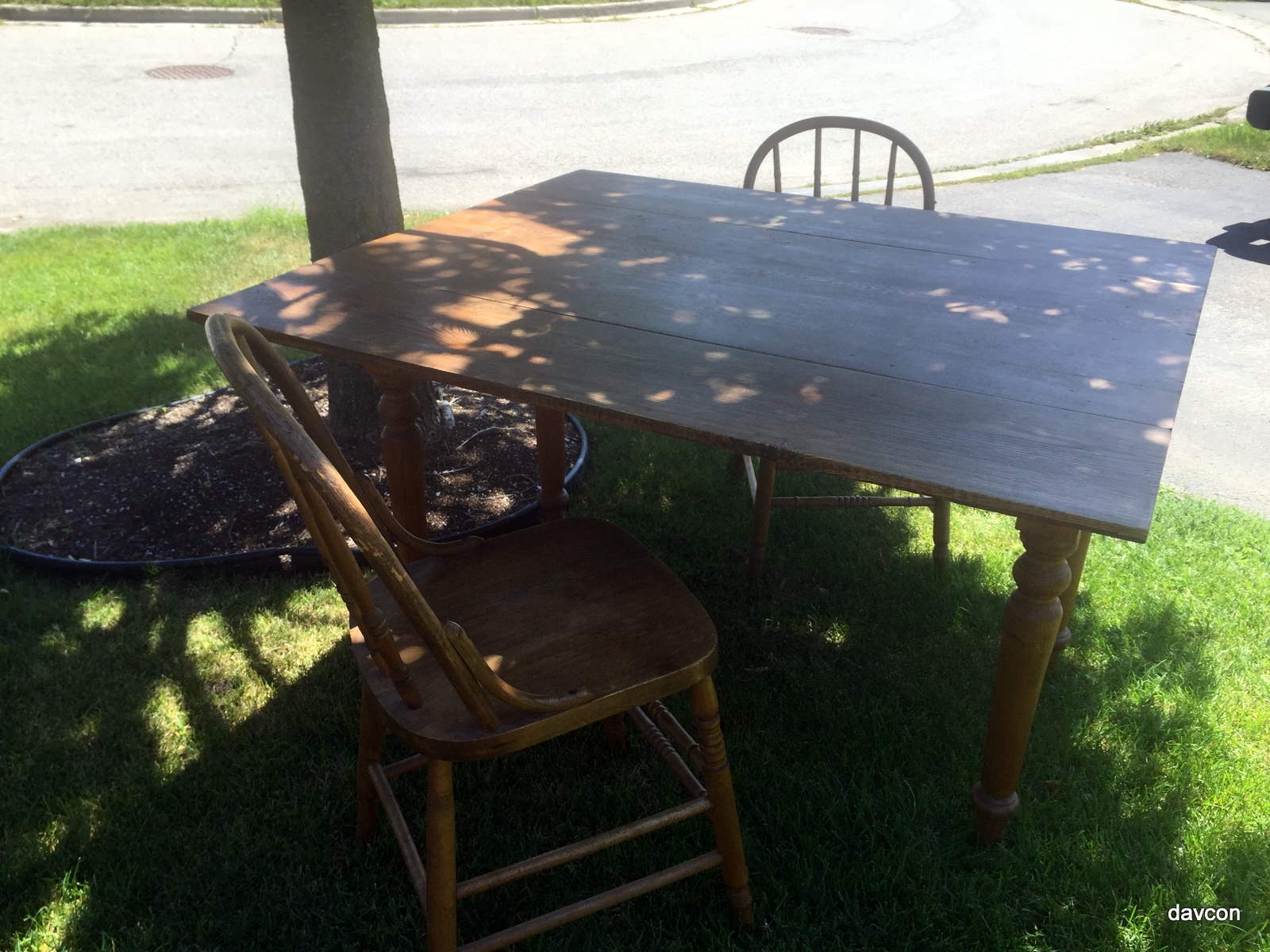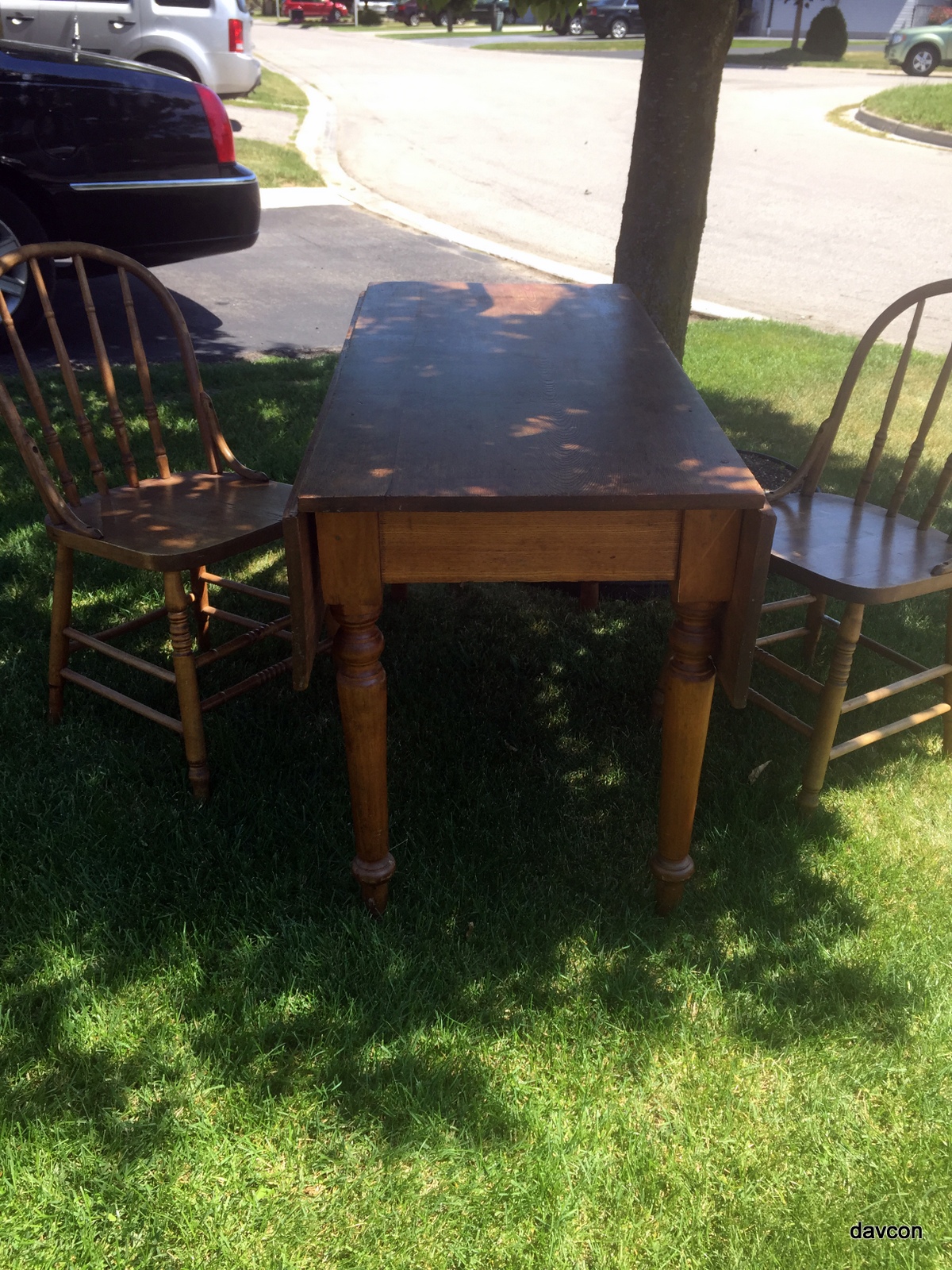 Antique table and 2 Chairs - Chairs have hip braces. Purchased 30 Years ago at antique store.