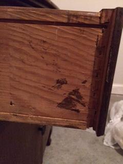 4) The "stain mess" you see also does not negate the age of your piece as I have a dining set from the turn of the century (not really well made) where the stain looks like yours on the backs of the pieces, bottoms of drawers, etc.
