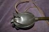I belive this lamp is Dutch pewter. It has some stamps on it. The cross piece that the wax sits on is very bendable.