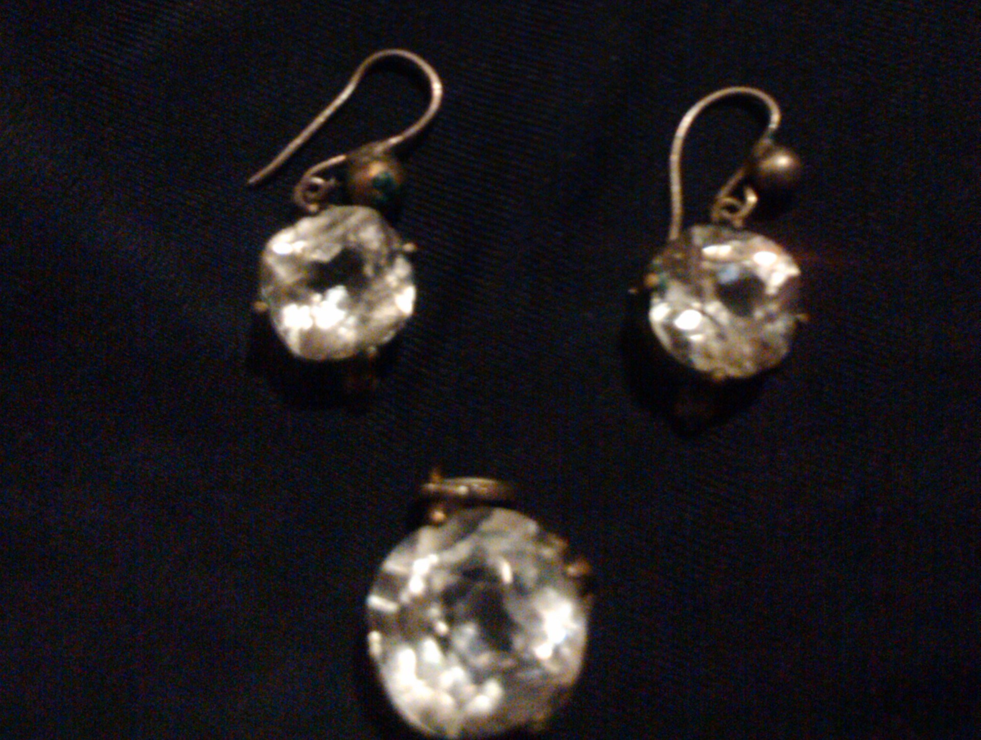 earrings are hook style and dangle just below the earlobe and have a small ball just above the diamong.