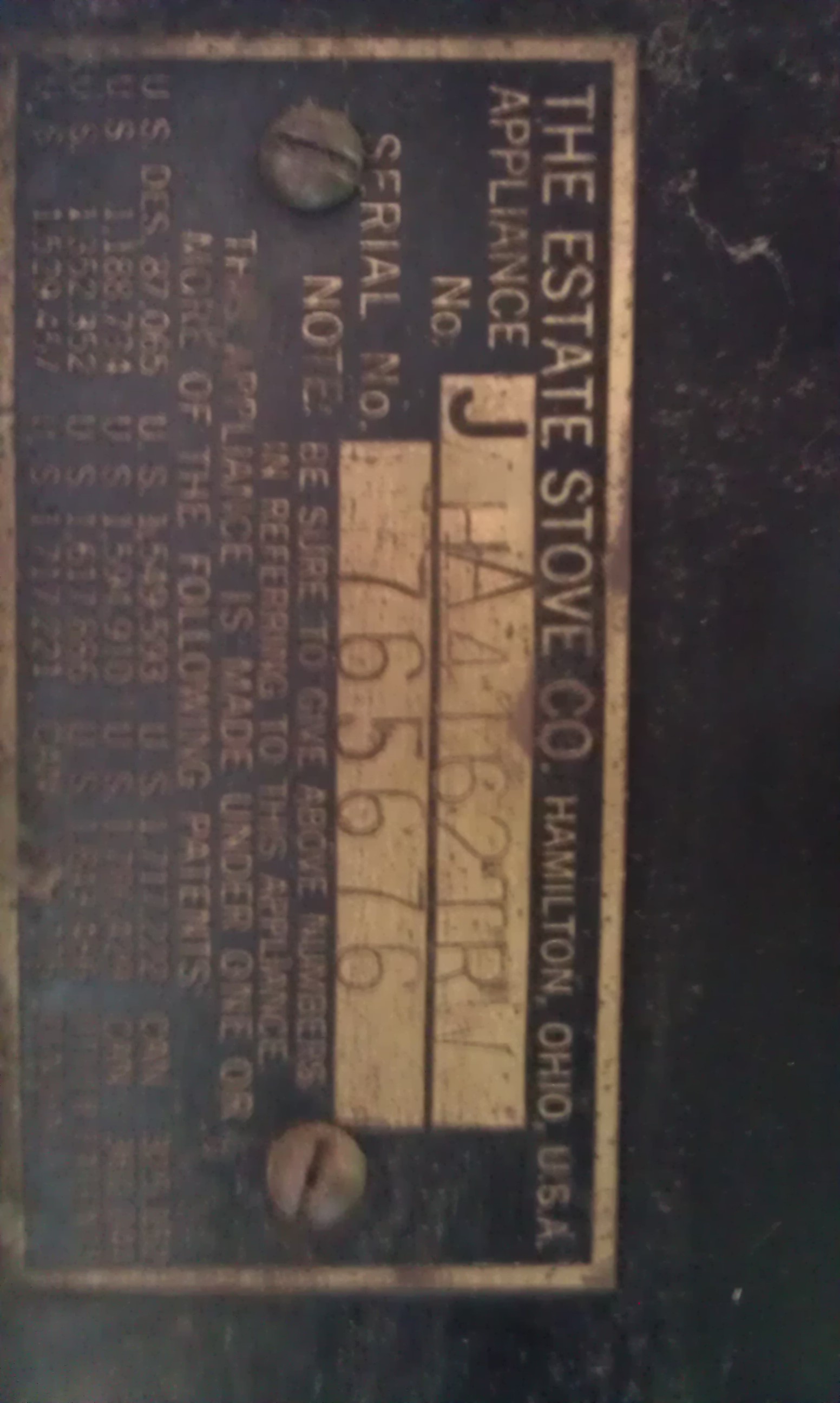 Estate stove company fresh air gas stove. Excellent condition with all knobs and working parts. Not sure of year but i have manufacters number available.