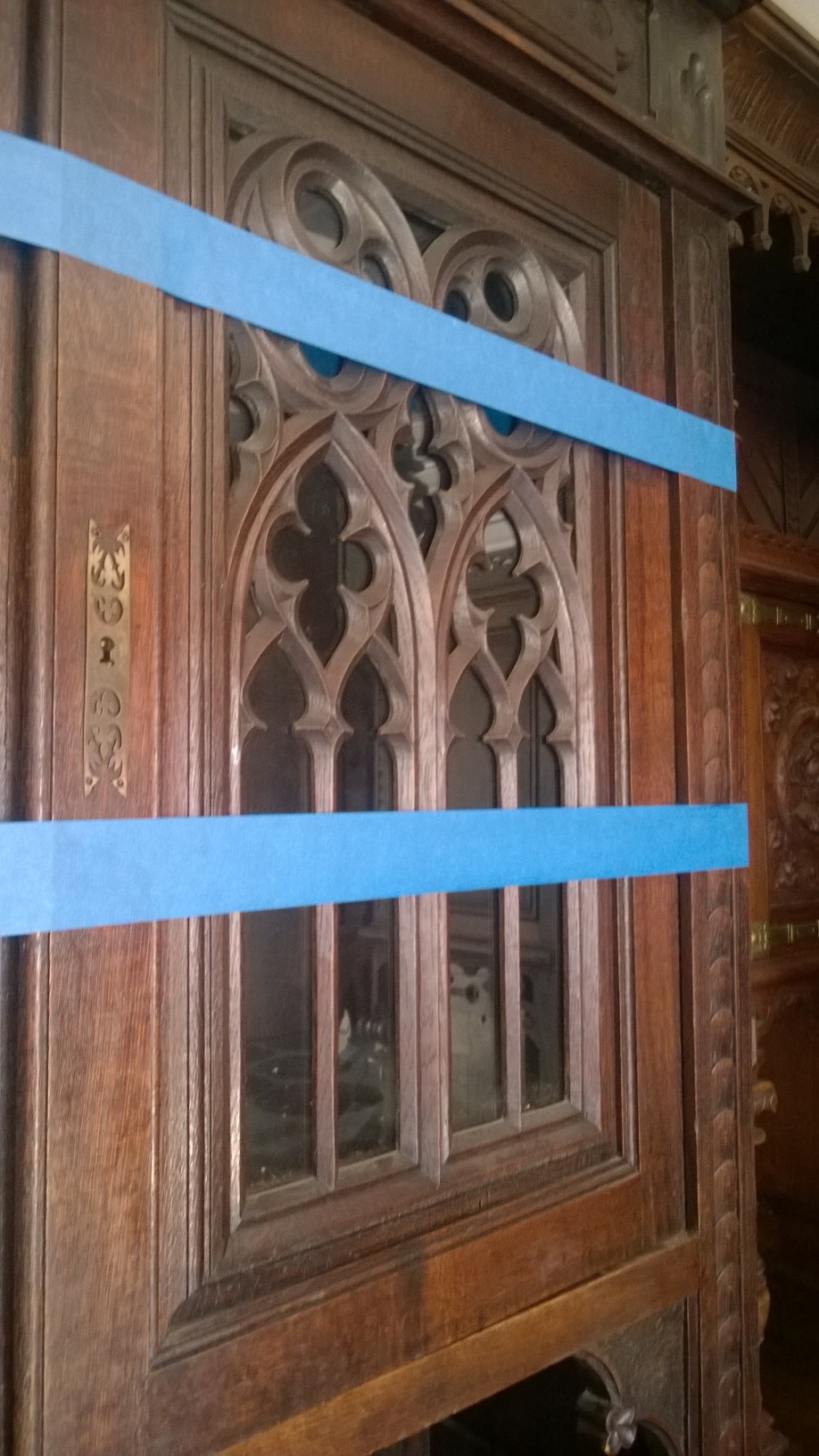 Unknown country of origin, but assumed to originate within church setting due to Norman arch design. All original hardware and had never been refinished while in my possession. Painter's tape used while transporting.