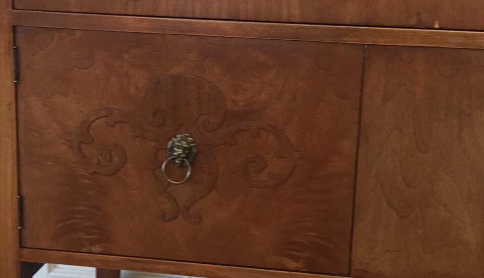 HELLO! Thank you For helping! I inherited this antique buffett/ Sidebaord and was told my family brought it over from England. In the research I've done it looks like a Sheraton piece but im not sure as their are no makers mark! Id love any help or advise anyone may have on whether this is a real Sheraton or a replica or another brand and if anyone knows a value for insurance purpses! THE CONDITION IS FANTASTIC WITH JUST GENTLE WEAR FOR THE AGE. THE QUALITY IS EVIDENT WITH THIS PIECE .