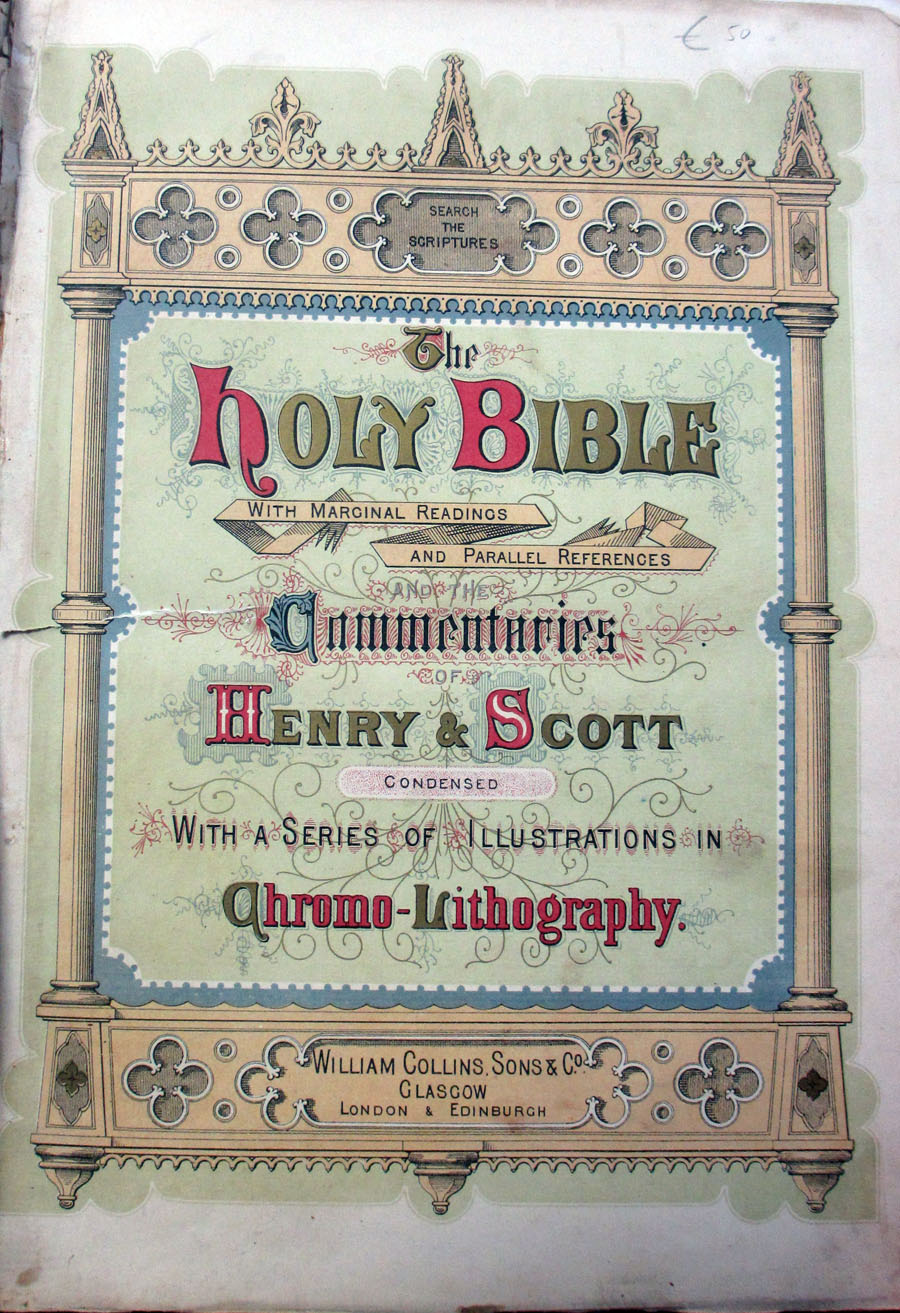 Front Page: The Holy Bible with marginal readings and parallel references, commentaries of Henry & Scott, condensed with a series of illustrations in Chromo-Lithography