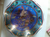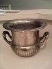 This was either a wedding gift to my grandmother (1920) or my great grandmother. It is 6" tall, opening 3 1/2", 15" around. My grandmother called it a water pitcher. Approx. 1 lb. 11 oz. Beautiful design includes smooth and "hammered" silver overlay with colored enamel? painted on the glass (Looks a little like stained glass windows). Mark at bottom of silver says "FINE.999SILVER" Underneath that "5 5 A" . On bottom of glass is etched "23-2" Silver and glass in excellent condition; colored enamel? is faded in some places. Have not found another example of this anywhere. Would love to get any information possible.