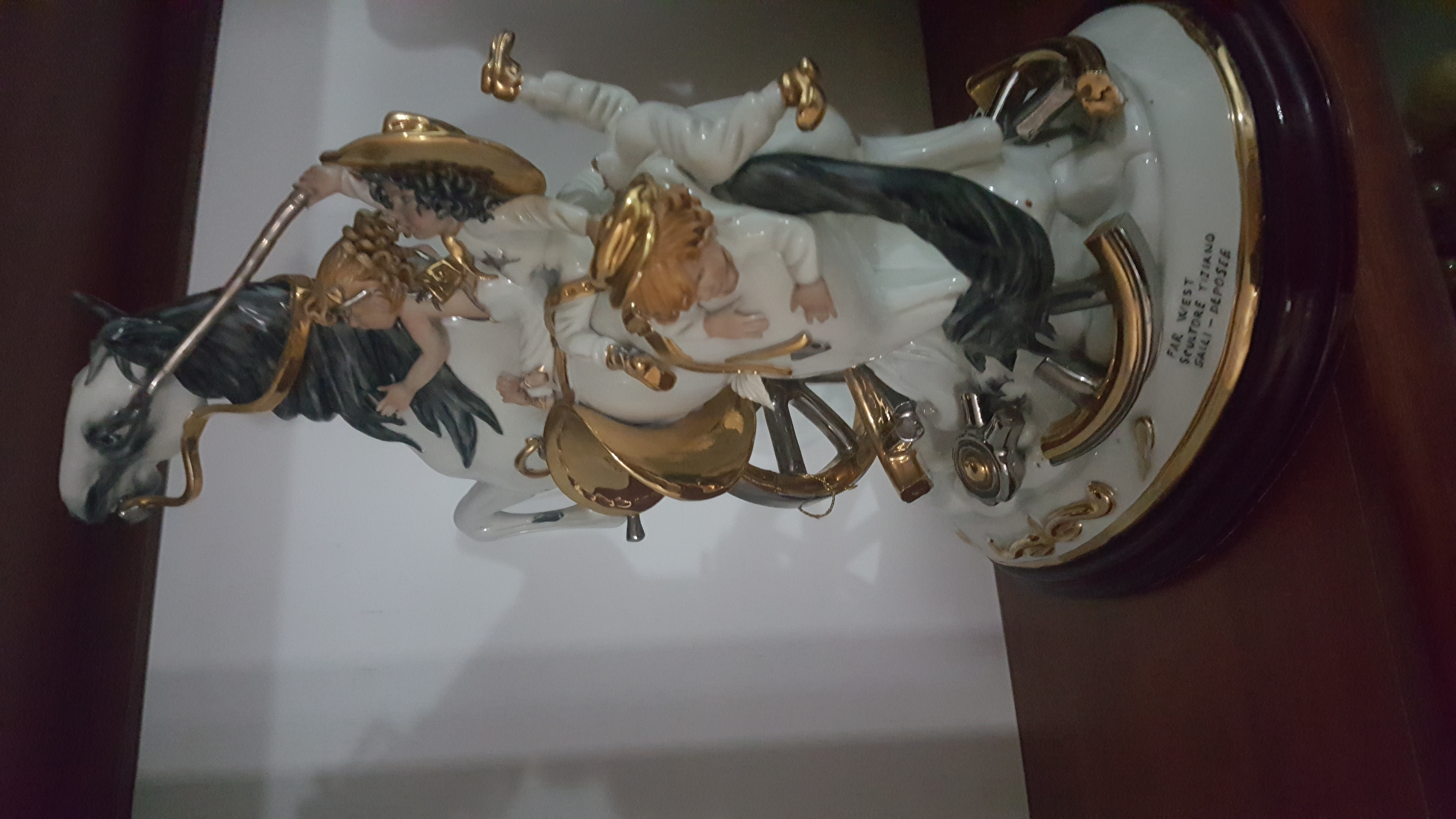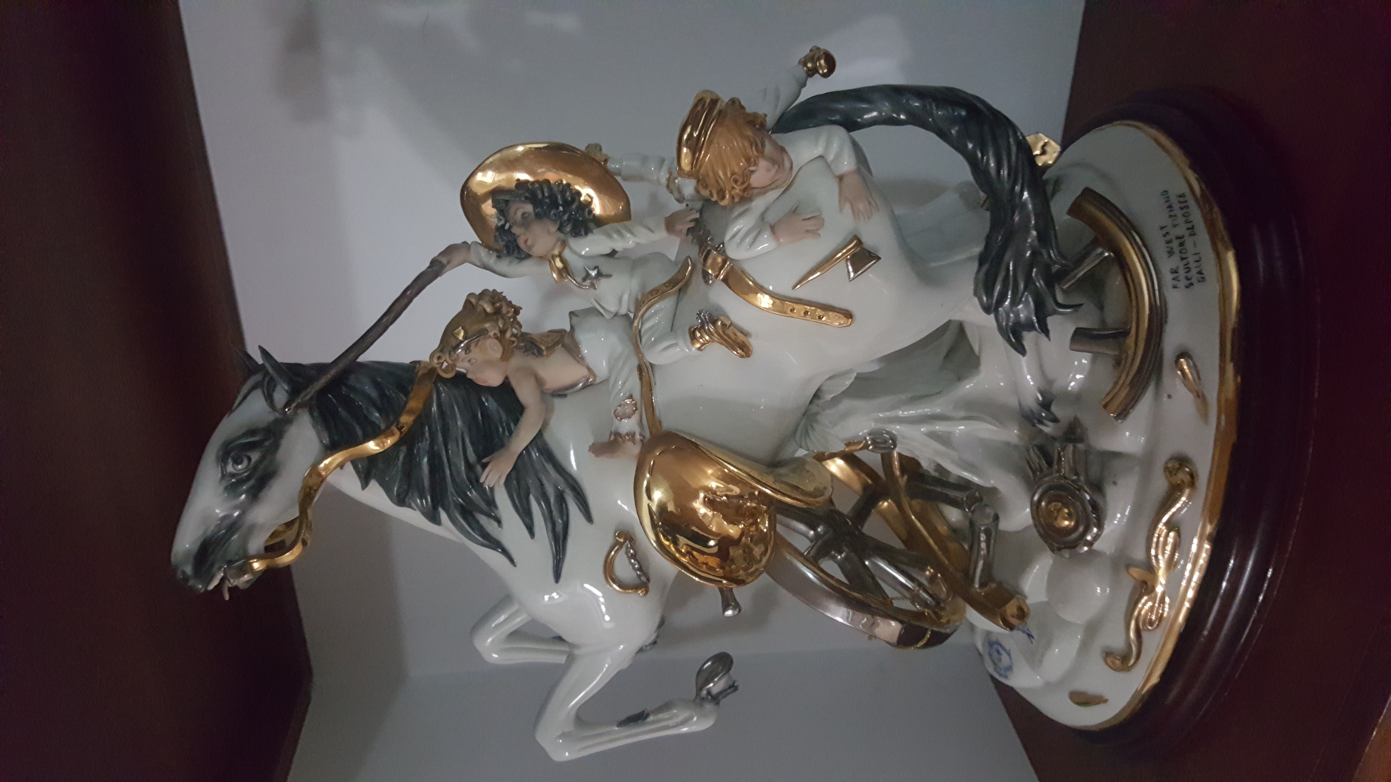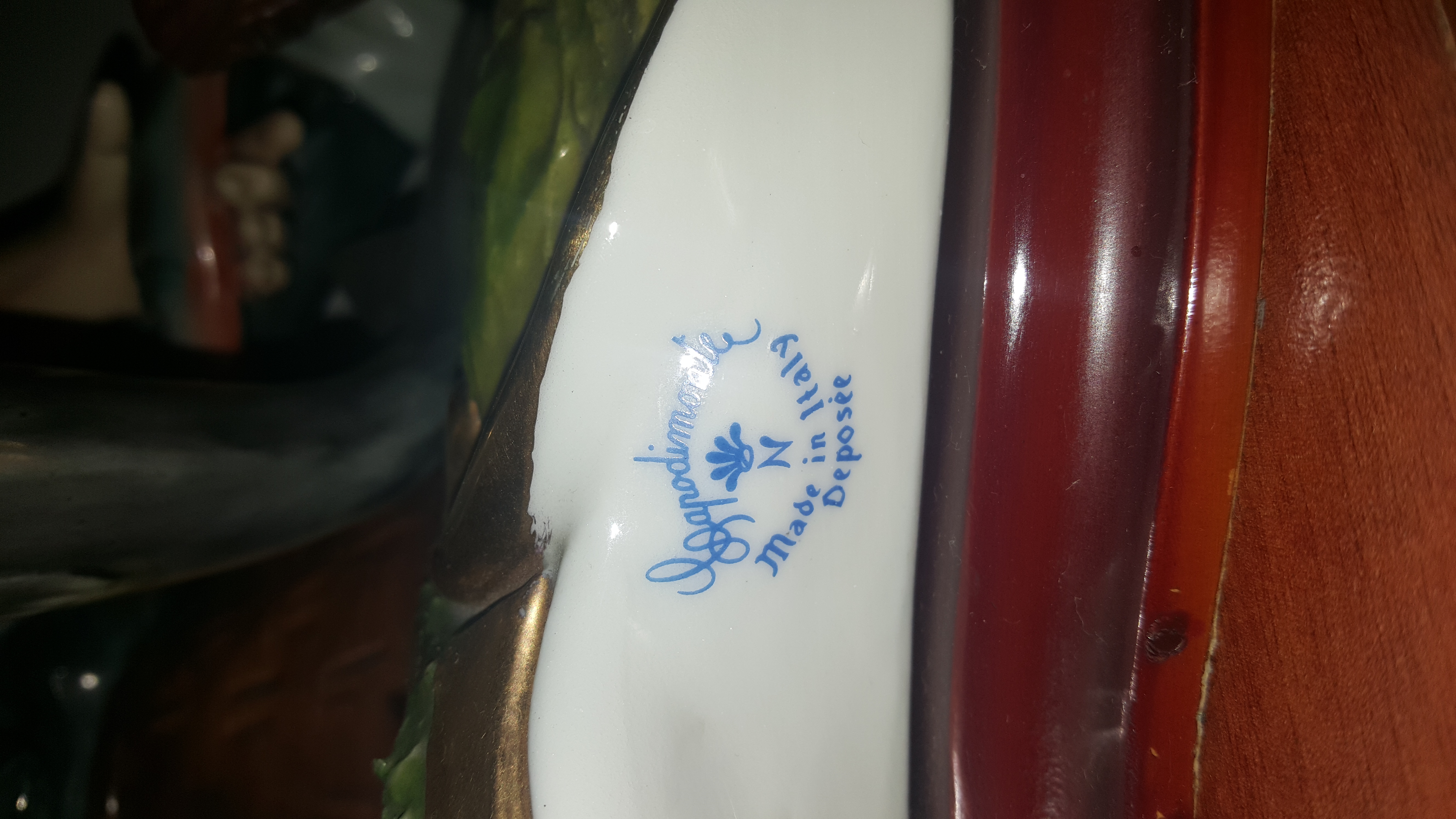 Capodimonte made in Italy fisherman holding fish. Pescatore scultore Tiziano Galli, Far West Scultore