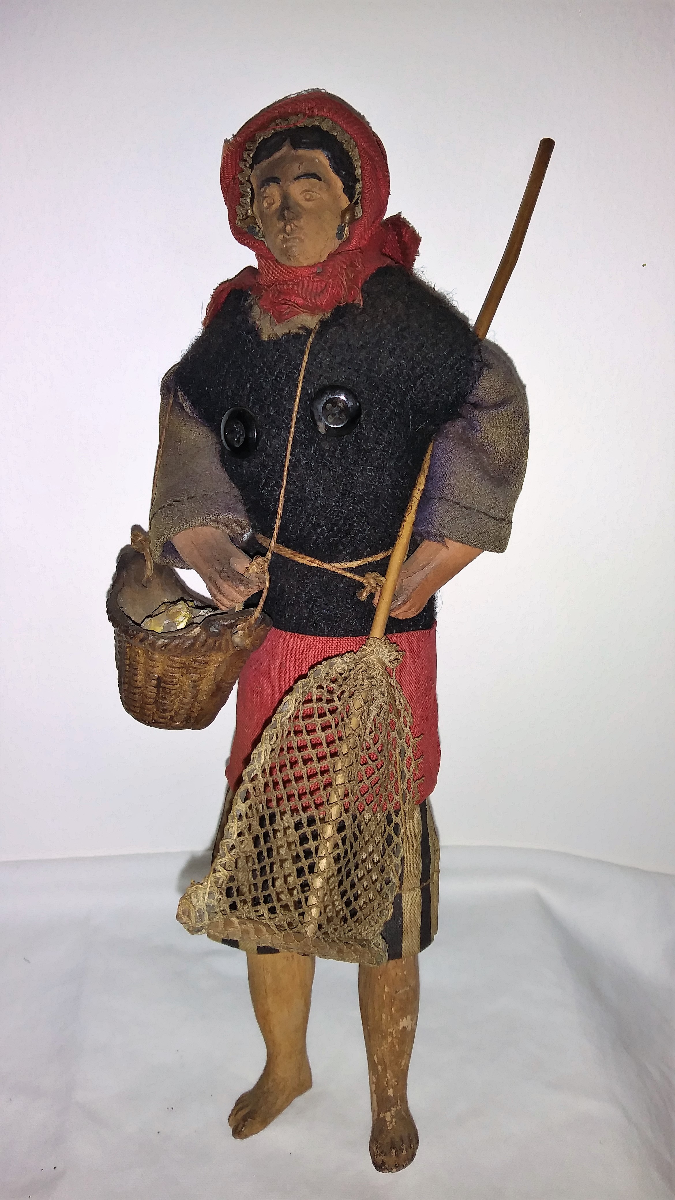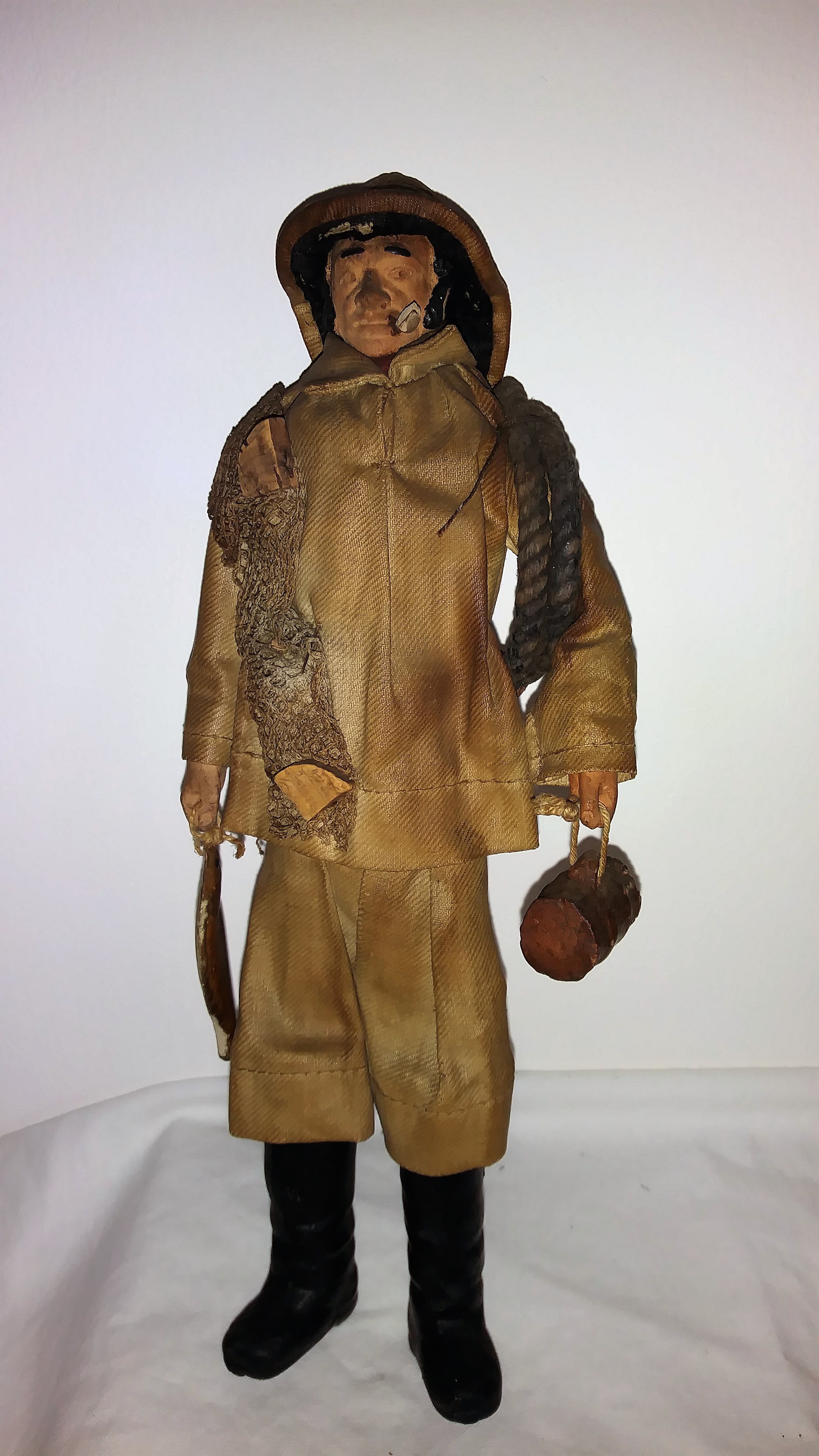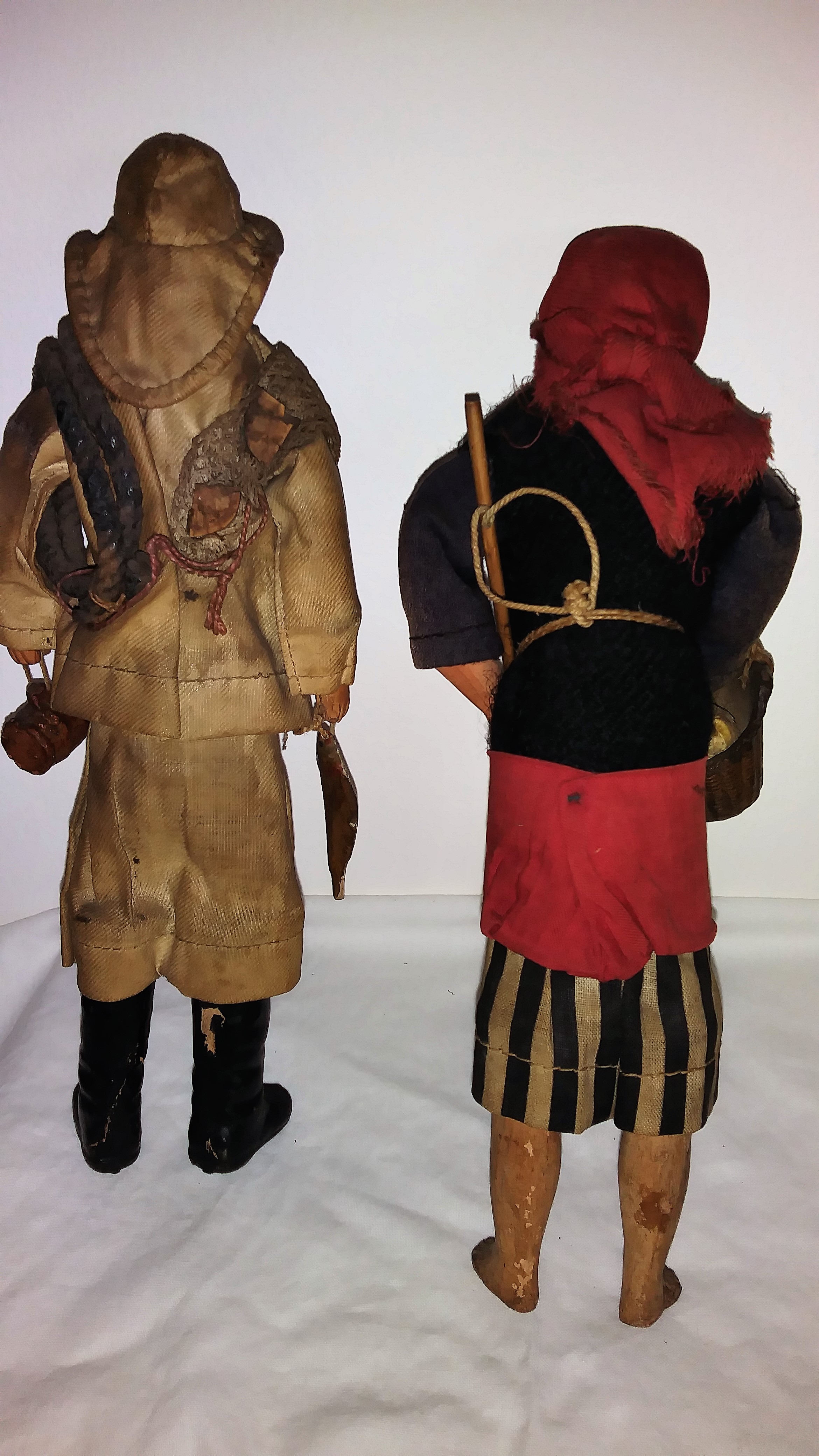 These 2 figures are 11" tall, made from clay, painted and with fabric clothes. I know they were brought to England in the early 1900's by a family member who had visited Canada. Sadly that's all we know about them so hoping to learn a bit more.