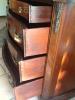 I just purchased this from a neighbor who is downsizing. It needs some work, but it is an intact piece. Skeleton keys even work. I was told it dates to the 1830's--but I have my doubts now. In any event, I would love any input from those who know more about these items than I do. I know it's an American piece by the tiny engraved lock plates on the inside of the drawers. It's allegedly from Upstate NY. The dovetails seem to be handmade (but that's my opinion). And that hideous felt on the desk--rust colored. I guess it's original.