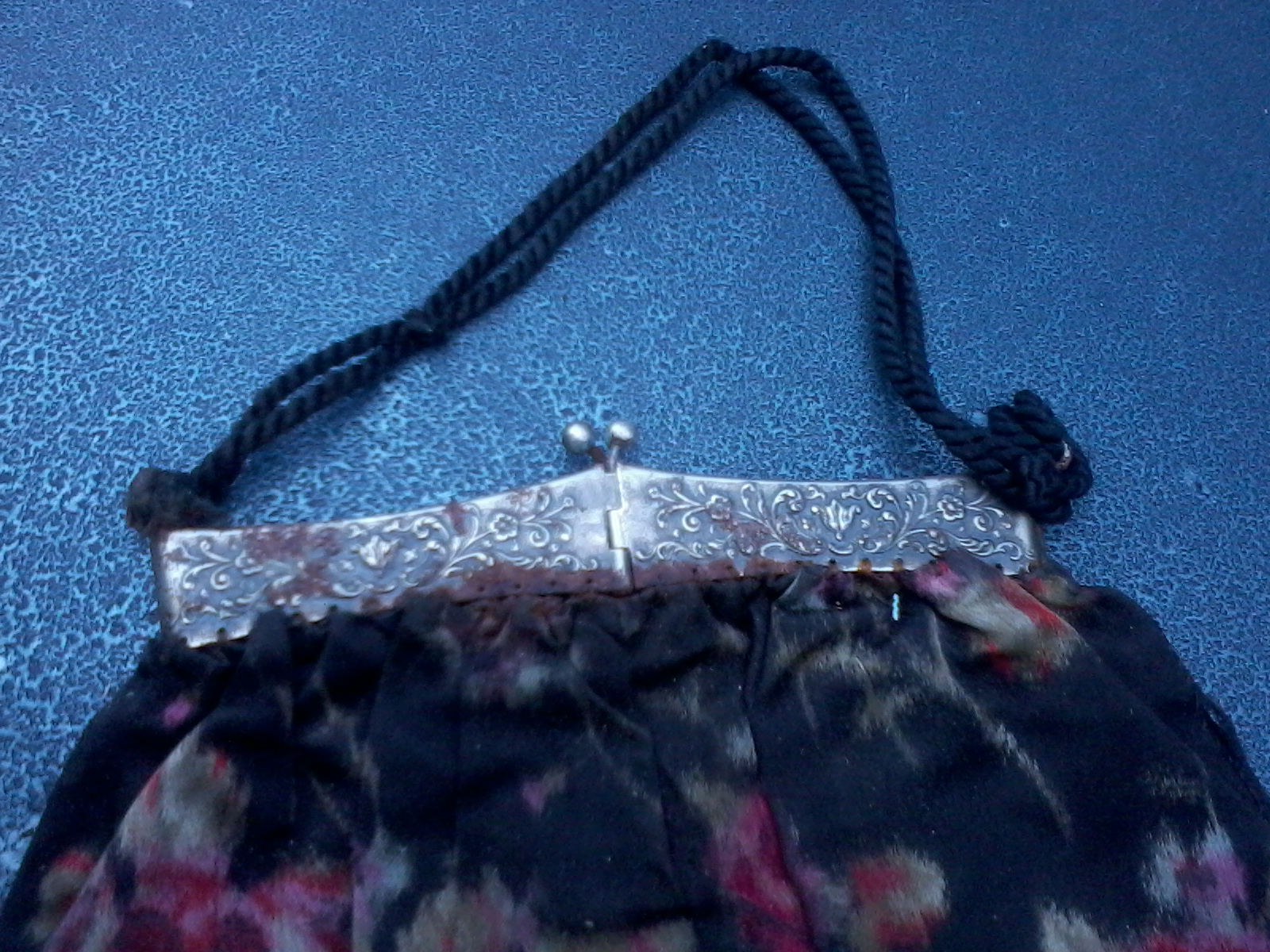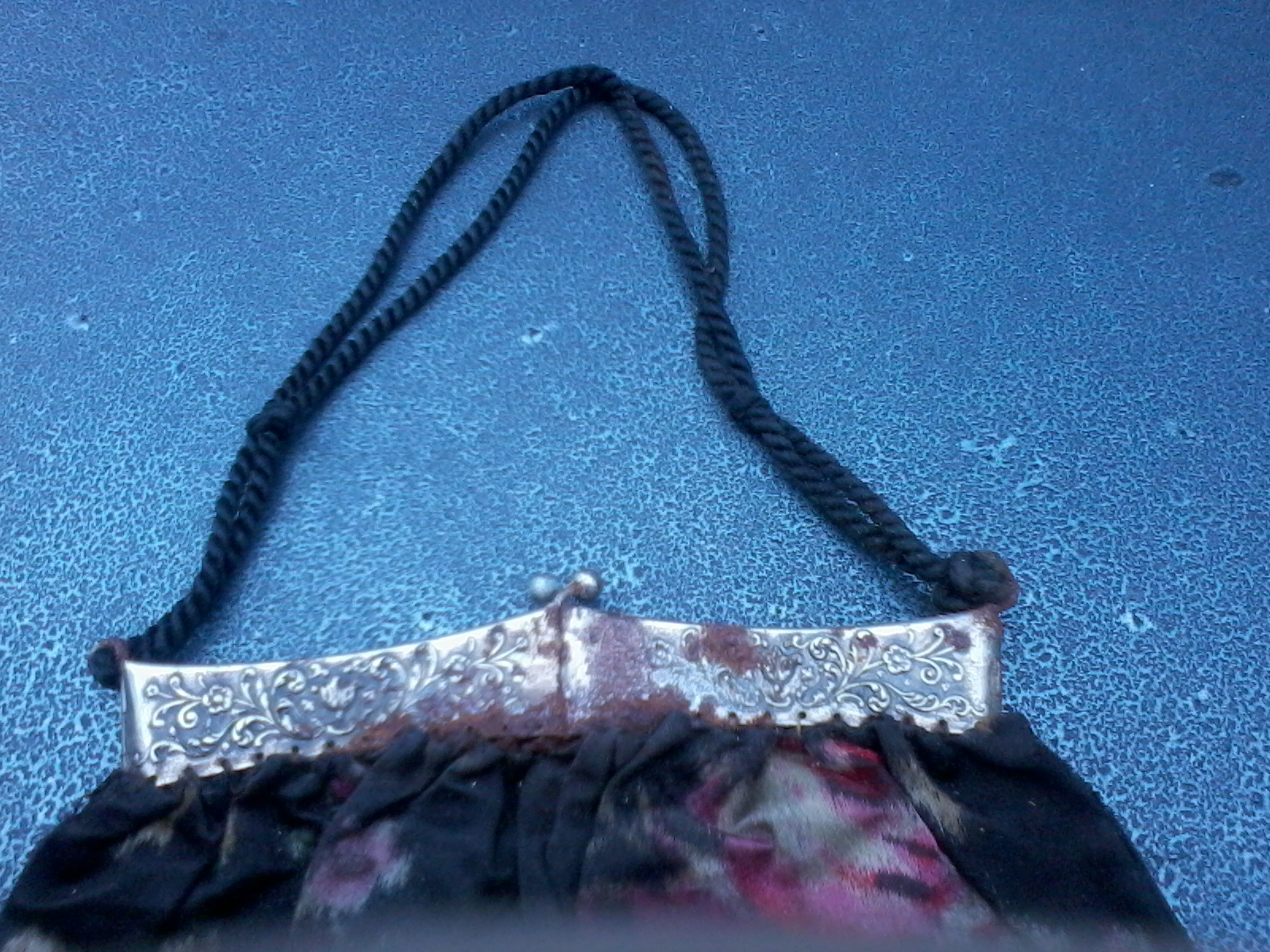 I was wondering what era this purse is from and what it might be worth. It is not in perfect condition at all. The Metal frame and clasp are rusty and the fabric of the purse is fragile and deteriorating a little, but it is really pretty. I just want to know the details.