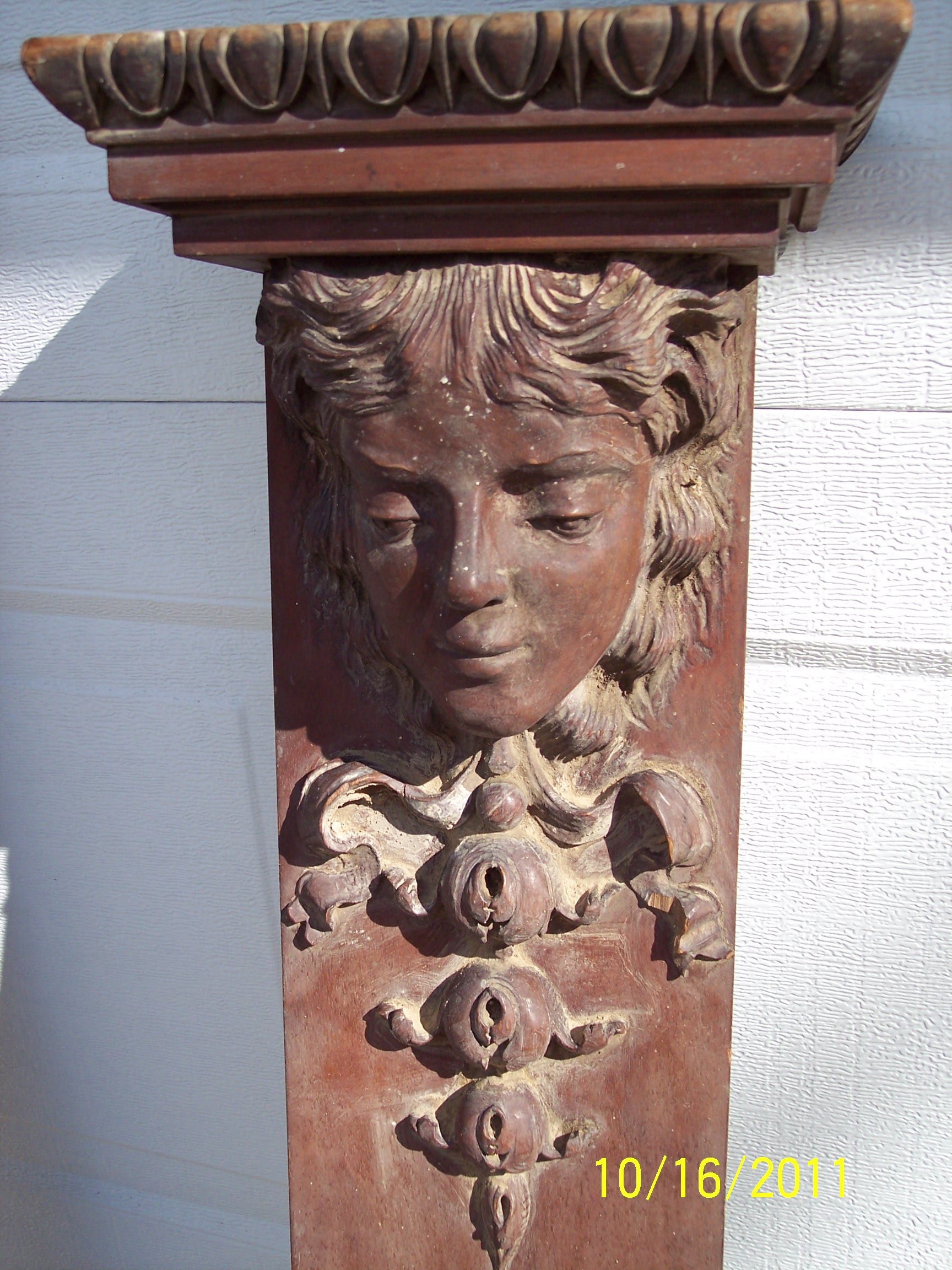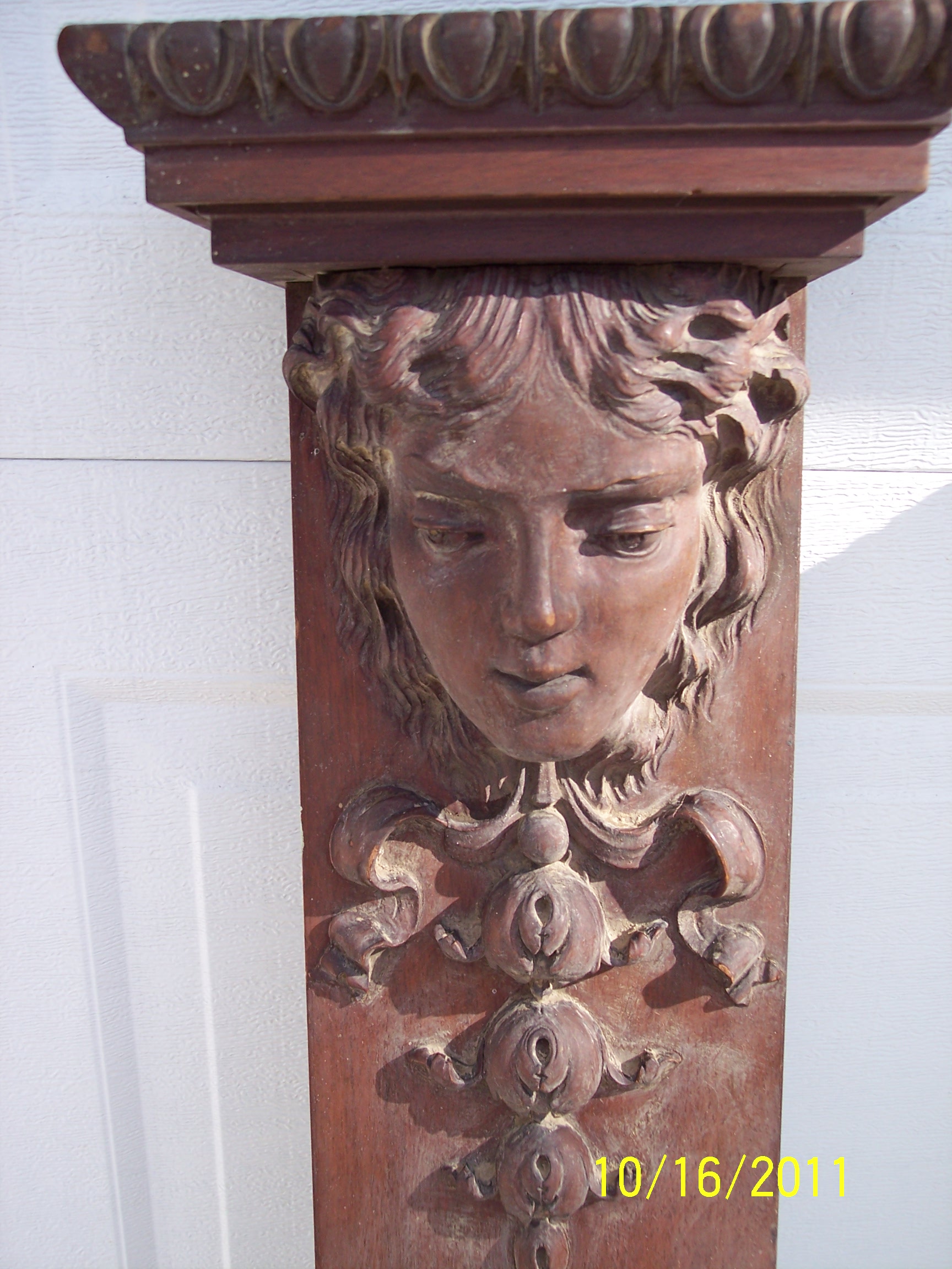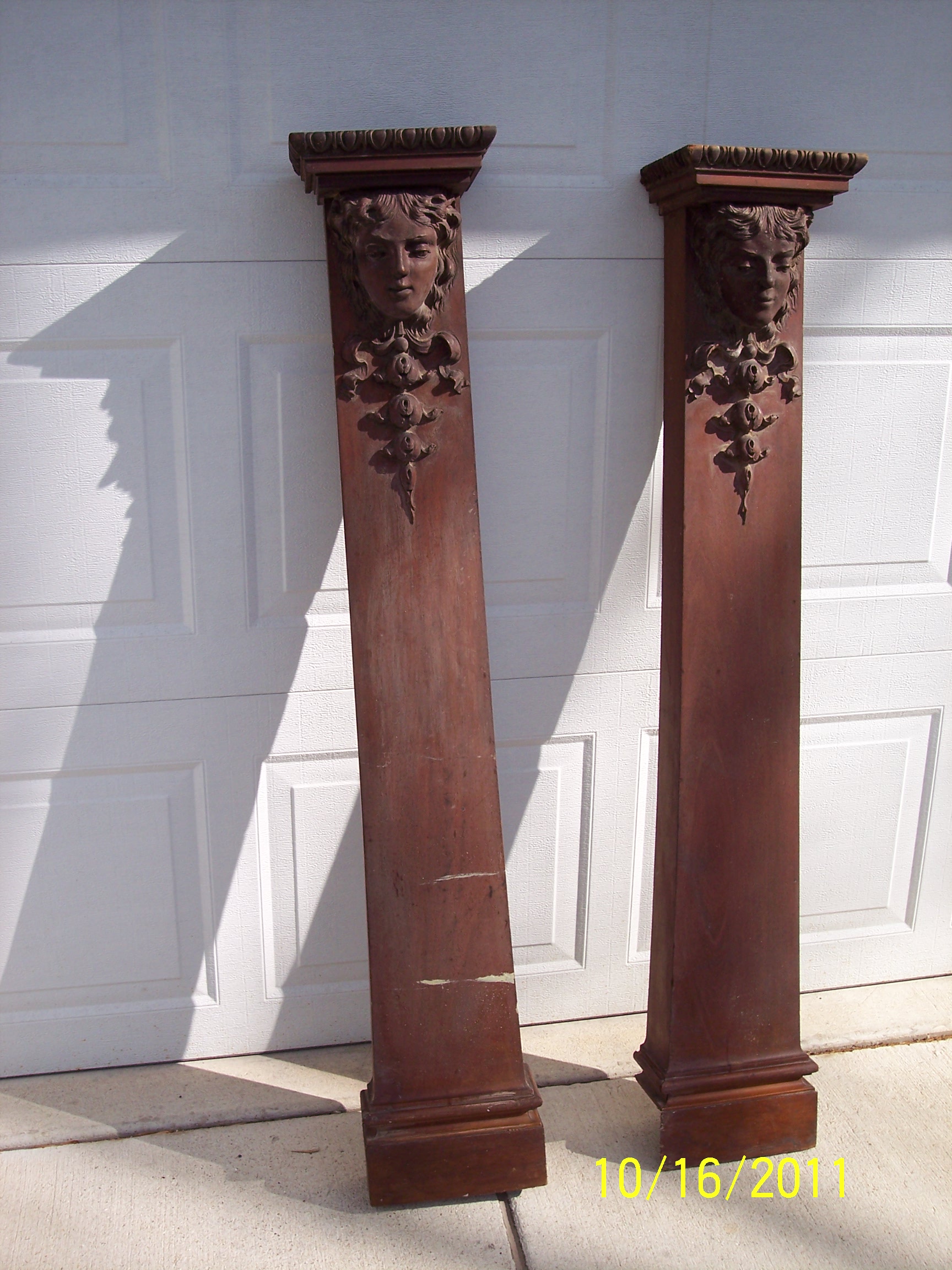 I have a left and righ side for a fireplace mantel. They have carvings of a girls/womens face and other intricate carvings. Not sure of the type of wood they are. Looking to see what they may be worth and what the time period would be.