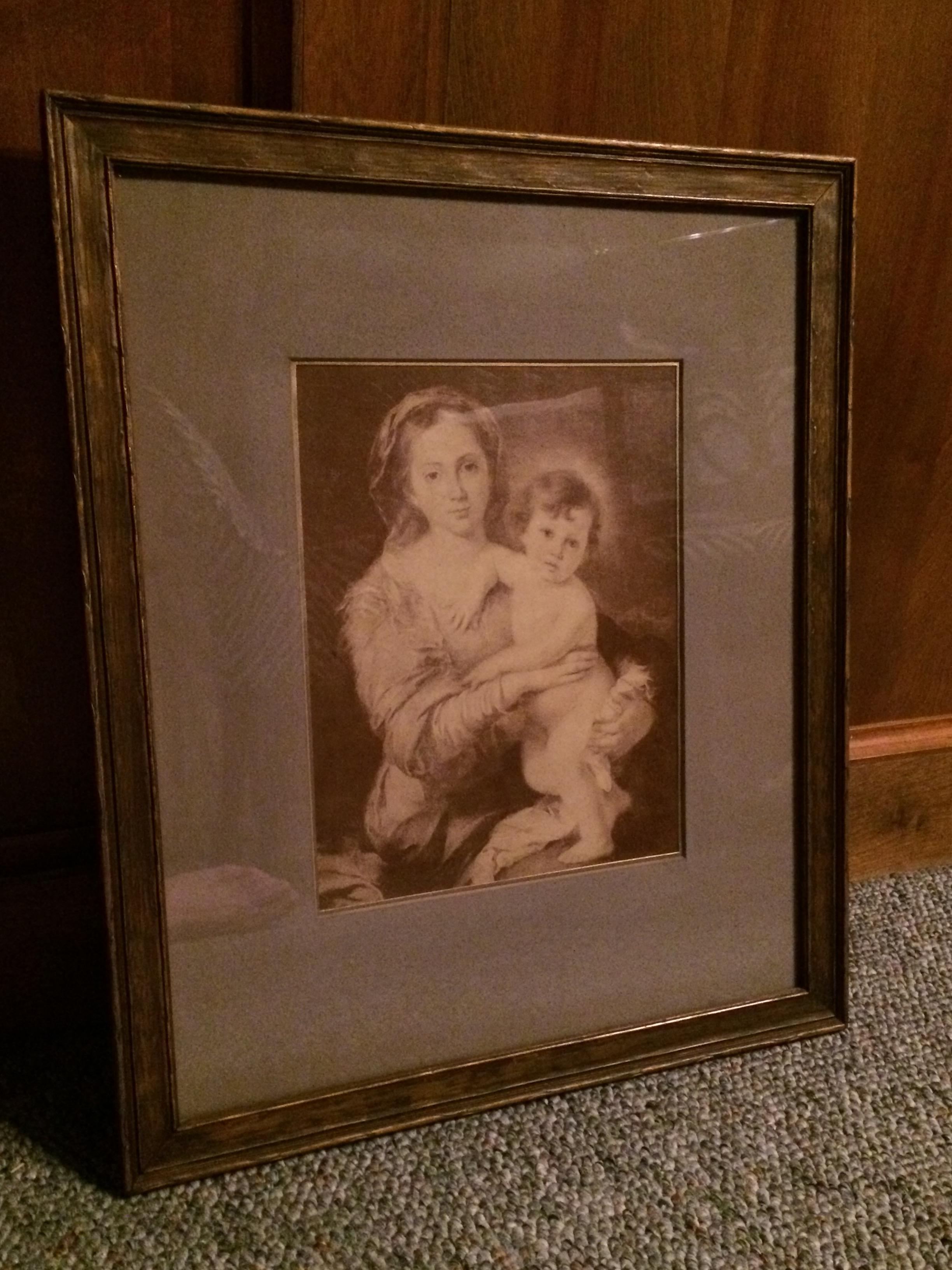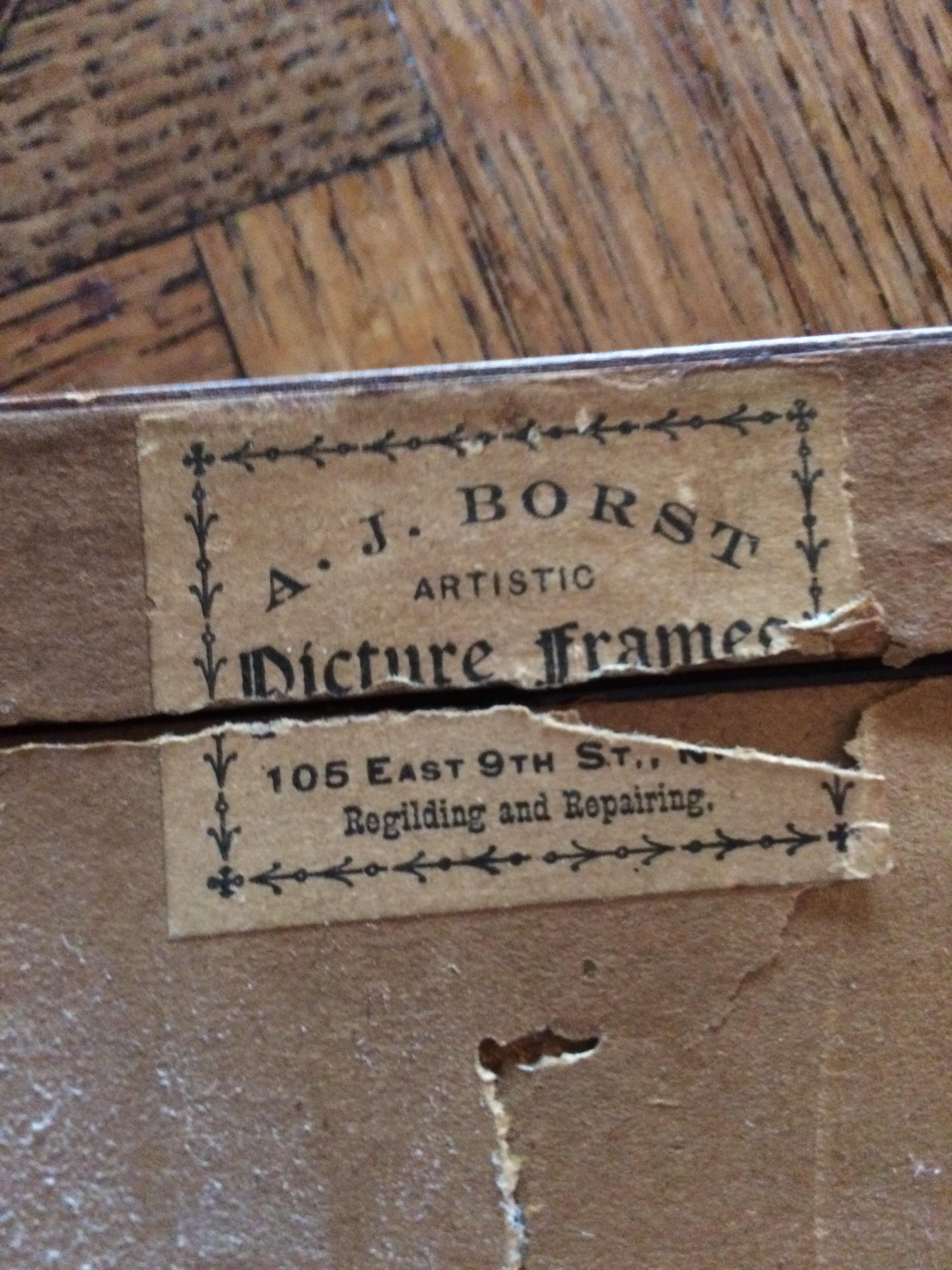 Madonna and child picture framed by AJ Borst, New York. The only reference to this company is from 1900 in New York labor reports.