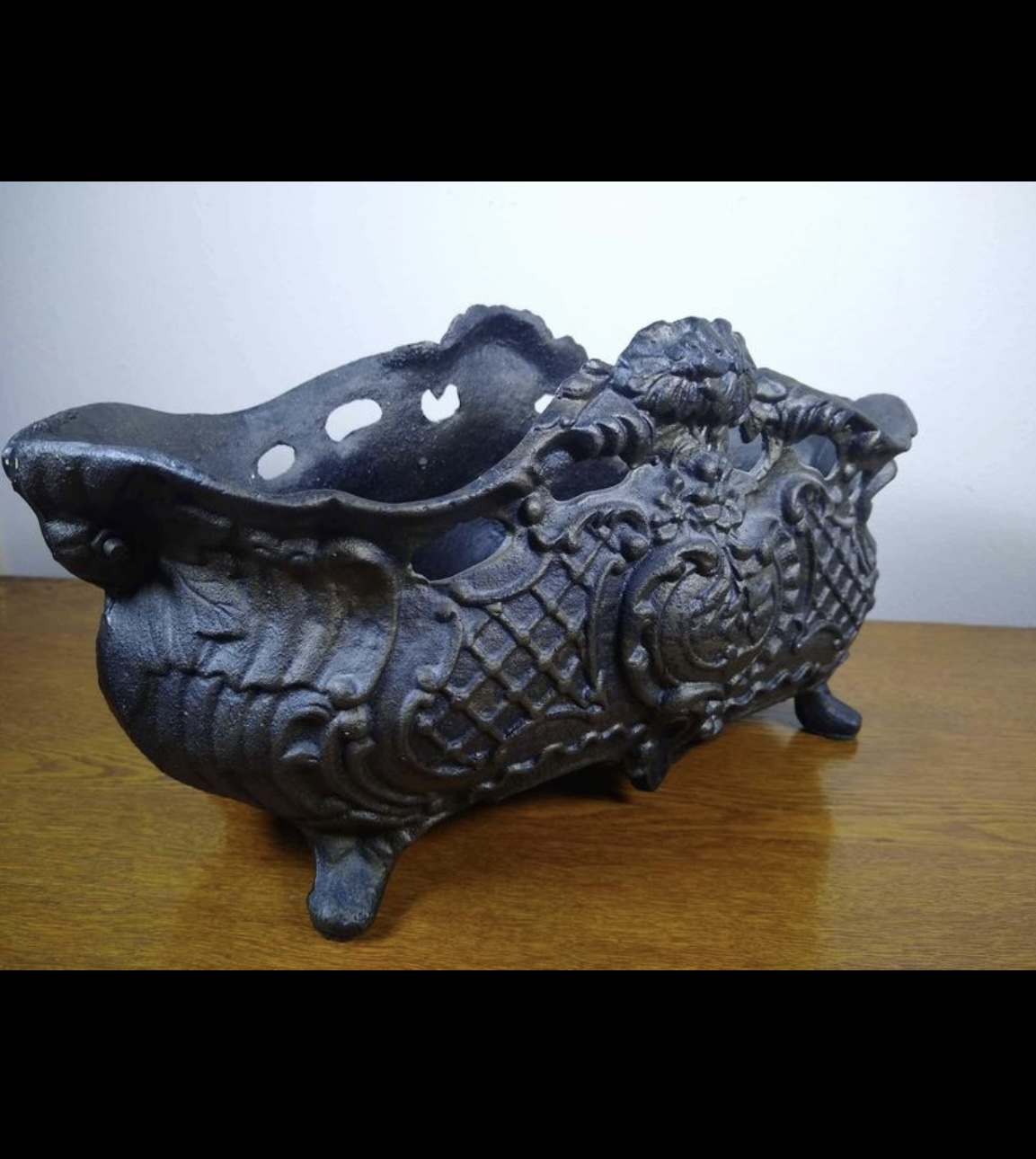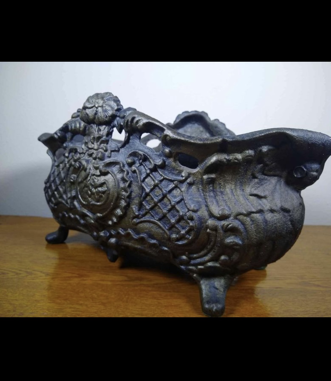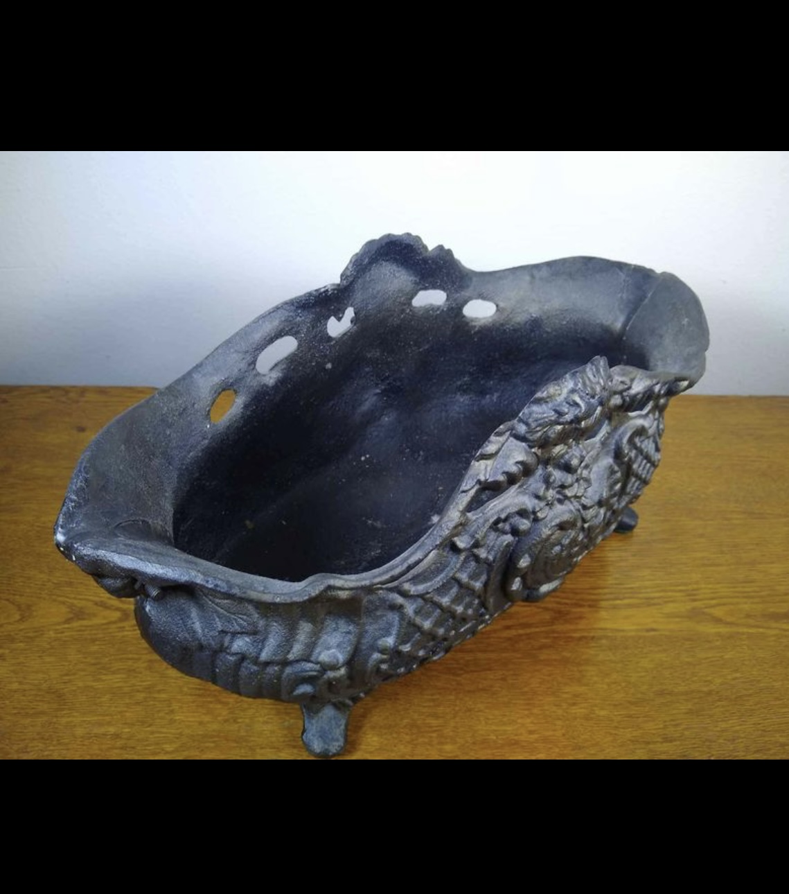 Antique French cast iron planter. It measures 16"x7.5"x8". I’m not sure of the date.
