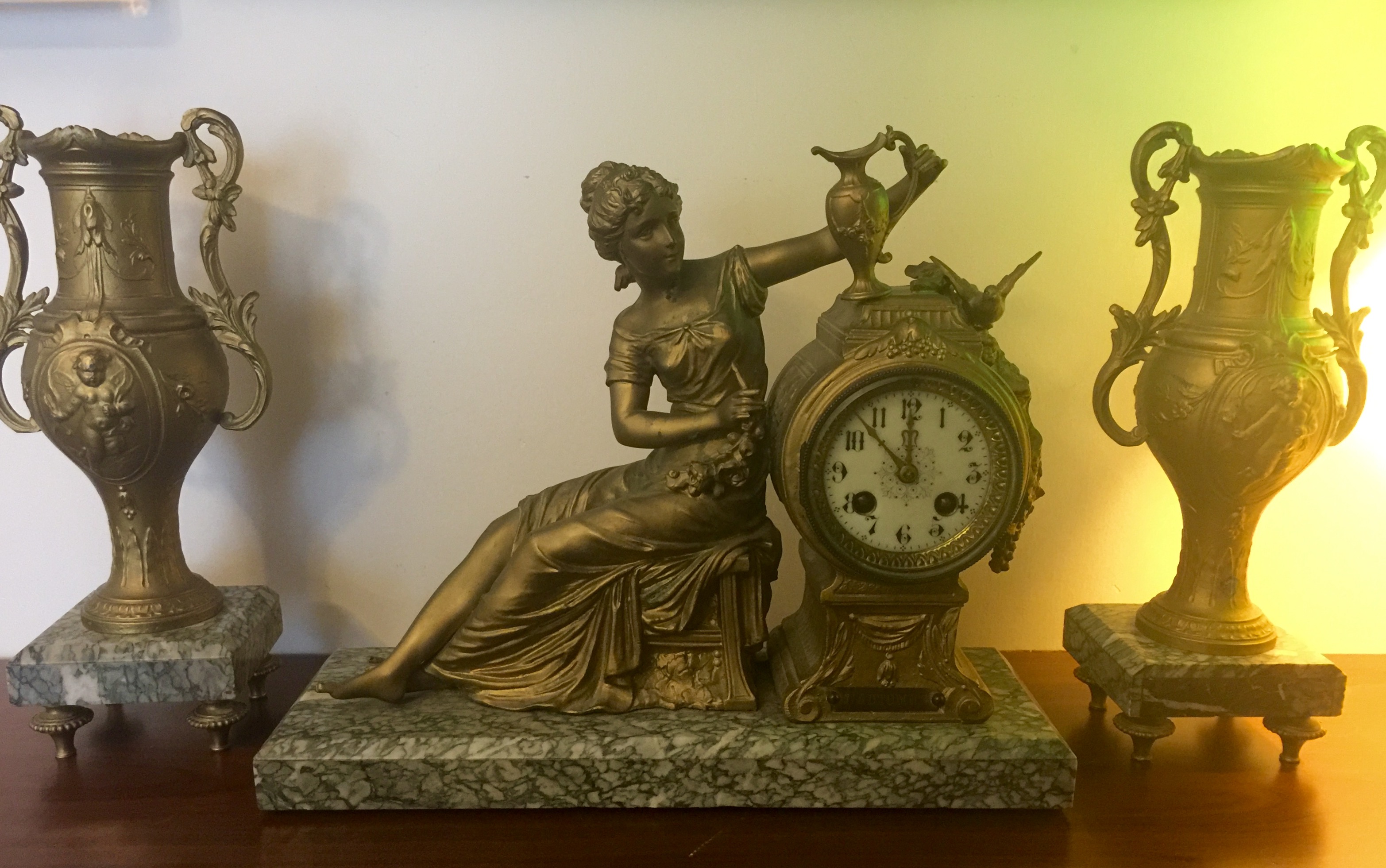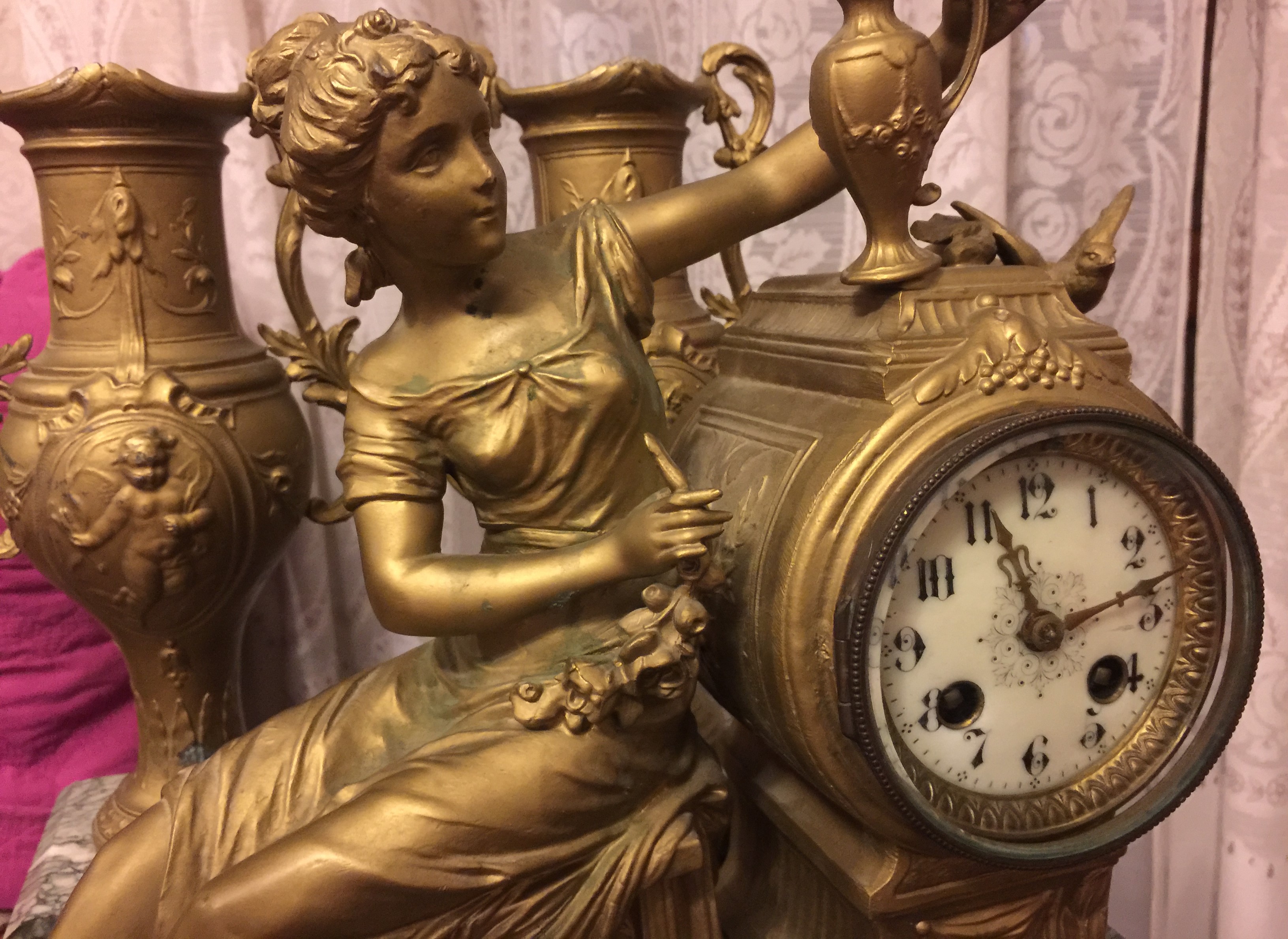 It says "japy freres & cie gde med d'honneur" on the stamp inside, and I suspect that the clock statues has been repainted. Era seems like 1870s/1880s with the stamp but I have no idea.