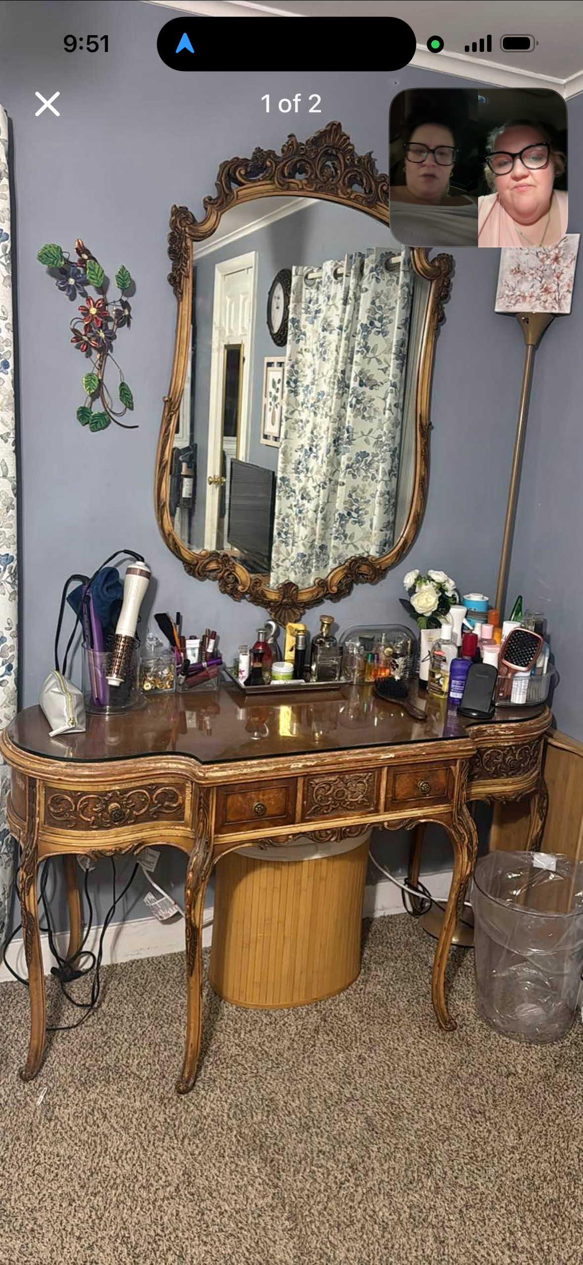 Antique French Style Vanity with Mirror. Dating to c. 1900-1950. Materials: Wood, glass. Estimated value: $300 – $500. Condition: Very Good. The market for antique furniture is stable, with moderate demand for well-preserved pieces.