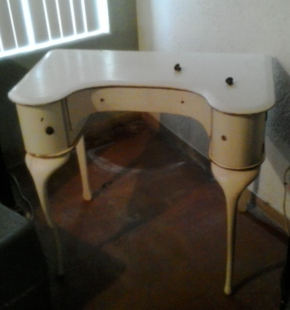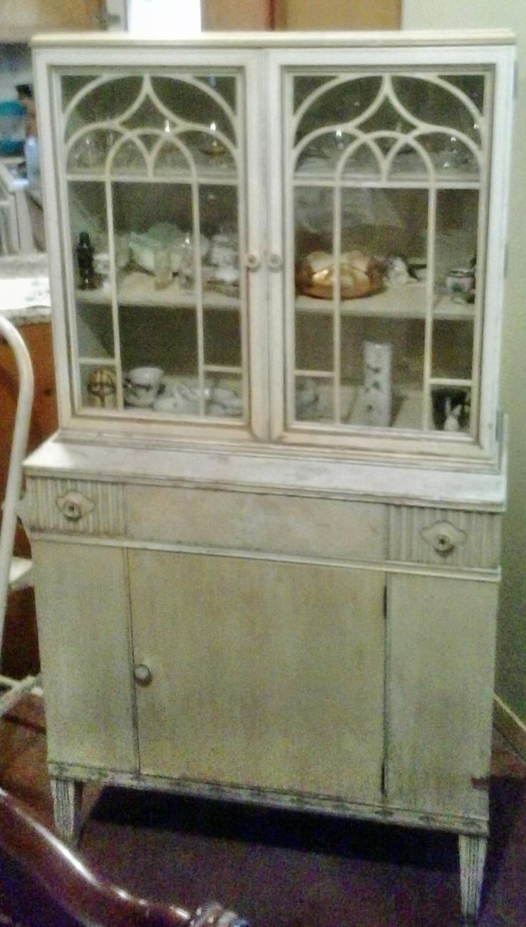 Item 2. White china cabinet with dish grooves in shelves. Purchased by my grandmother in the 30s or 40s. No identification markings.