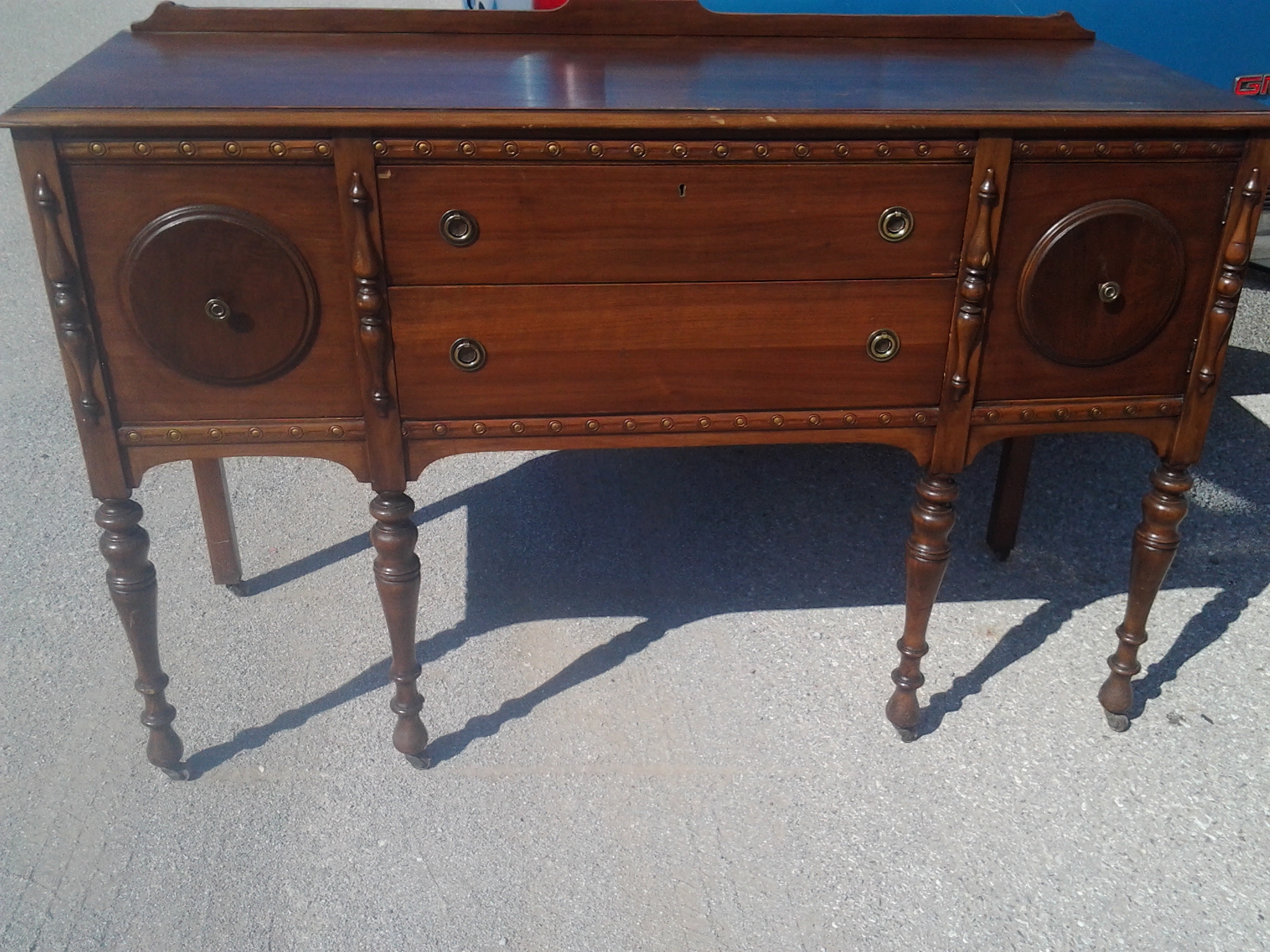 I am trying to find out any information on these pieces and the year their made and the value of each of these pieces. i know on the antique tv stand if thats what it is the number on the back says 695. WAL. and it has two cabinets on each side with drawers in middle and the legs are on wheels and it does not come apart even at the legs. And the coffee table is all wood with brass on each corner and has a drawer in the front of it. I know one mirror is a big wall mirror and the other is an oval mirror on its own swivel stand. Any information on maker or year or anything else would be helpful. I am also intersted in finding out the value of each item. Thank you!