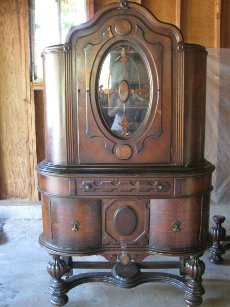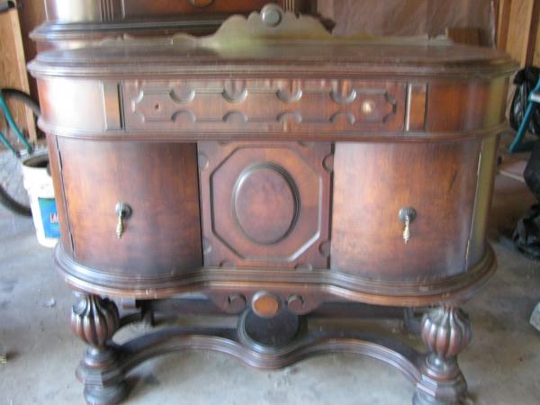 I received this set as a gift.He told us that it had been appraised 2 yrs prior at $9,000. However this set has been moved so many times in the past 10 yrs,it has received some damage.It is missing one of the drawers on the long baffet.I still have the skeleton key that goes with the glass door hutch. On interesting thing, is the wheels are made of wood as well.I was told by a friend that he thought ithe set was from the 1920's - 30's and he thought it may be a high end remake of furniture from the 1880's or so.