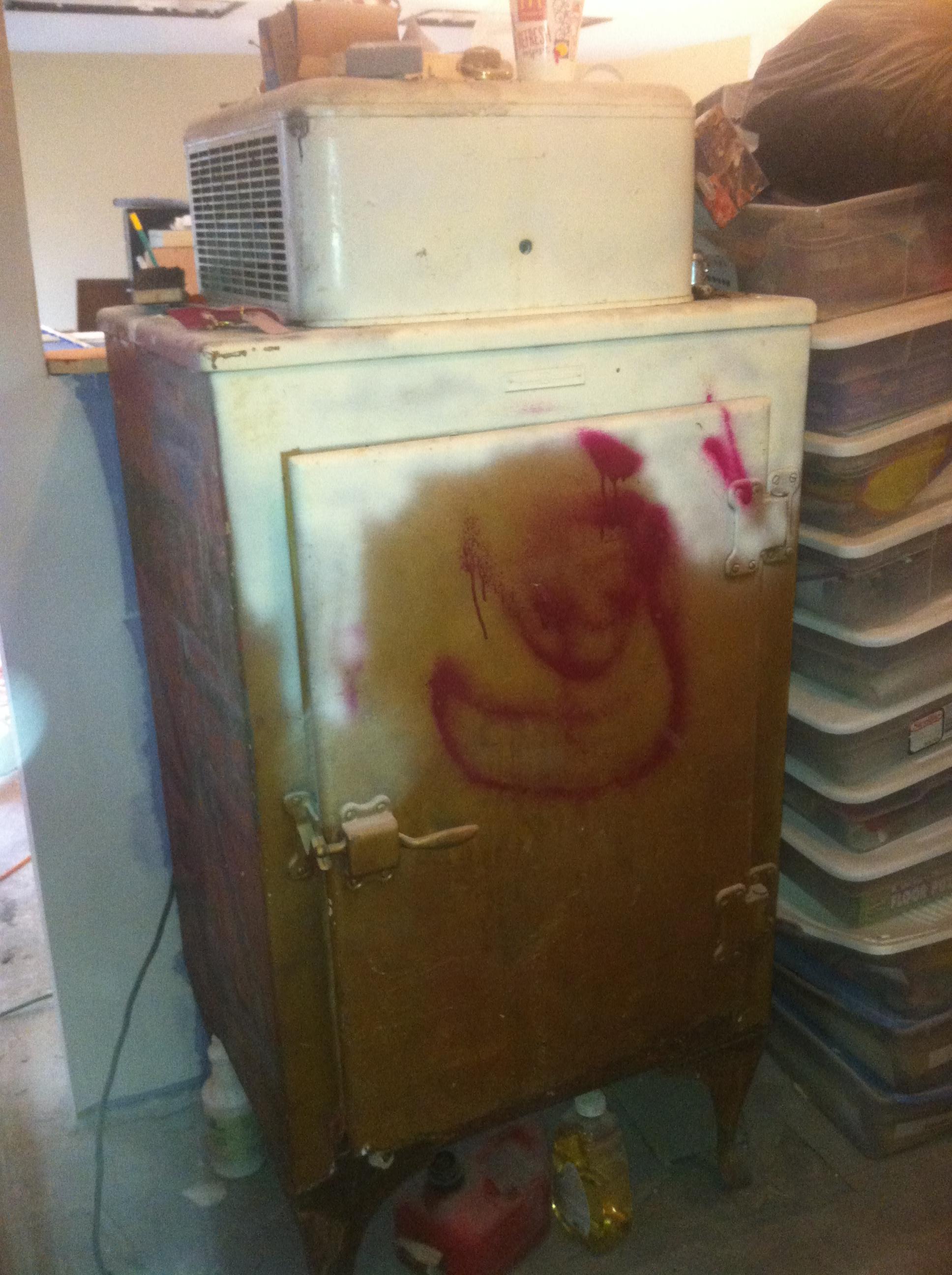 This is a GE Refrigerator that has been stored in a 2 story garage for 20 years that can be traced. this antique has claw feet.