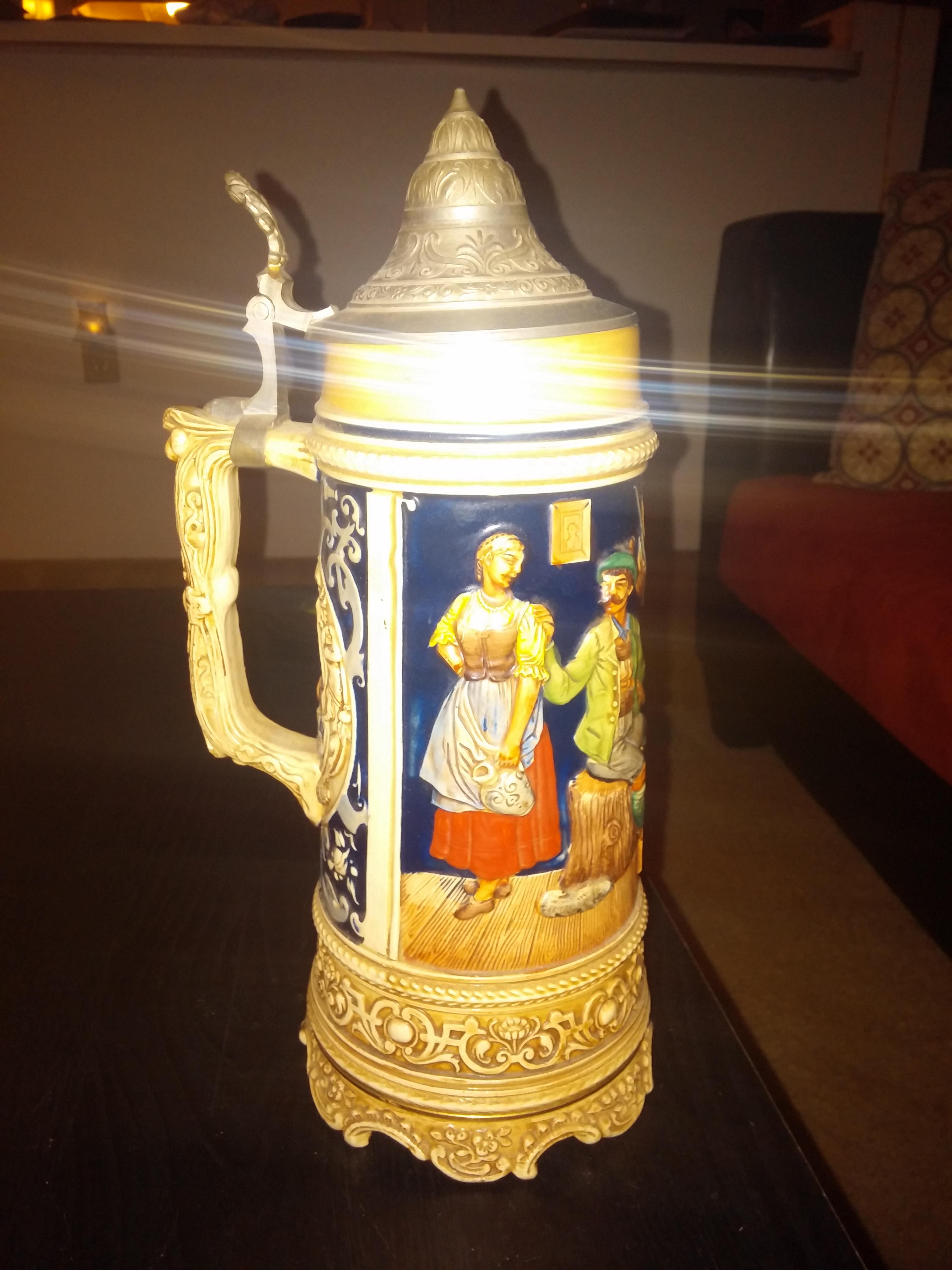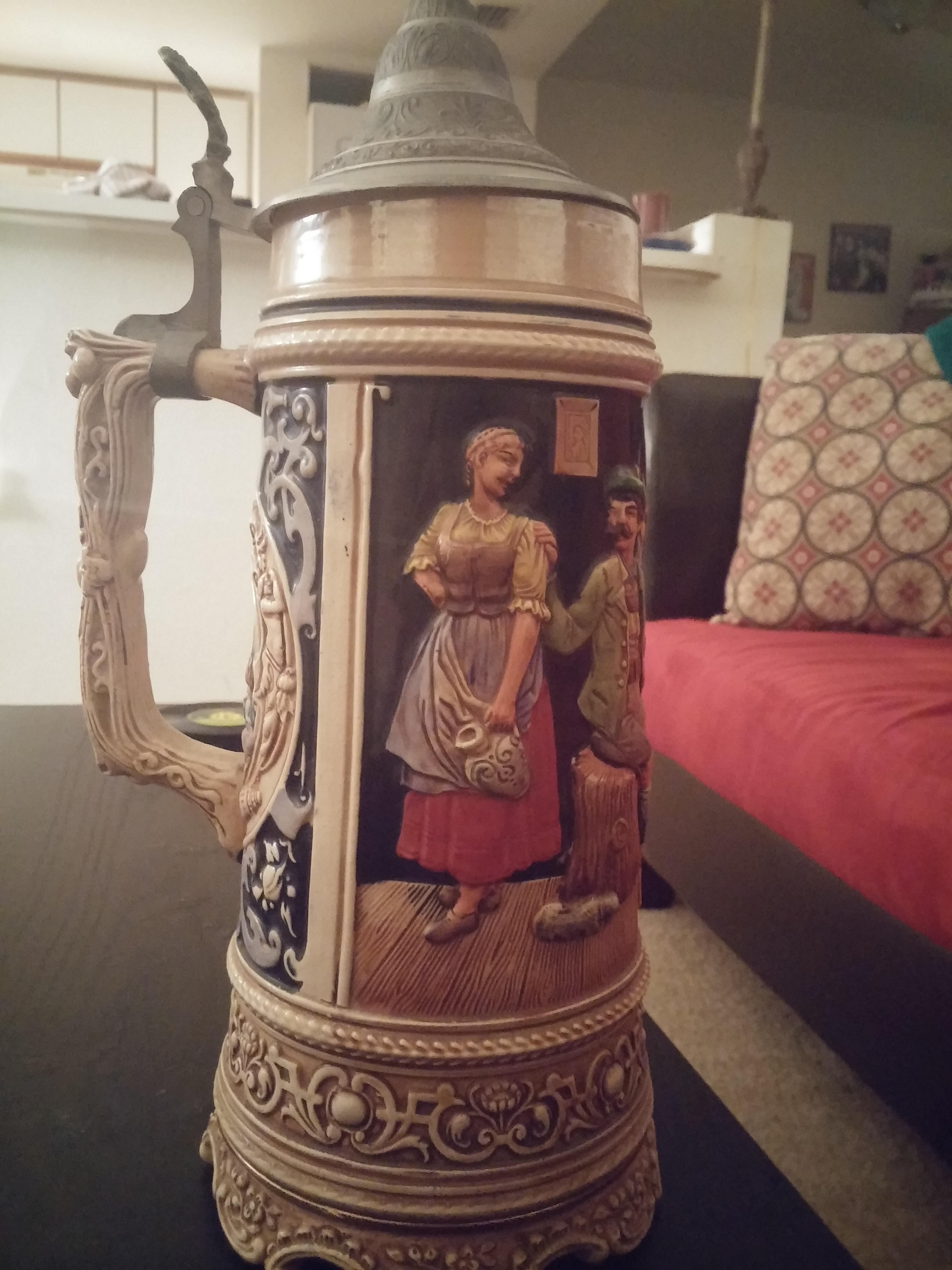 This was a inherited item from my grandmother. Her family immigrated to America from Germany. Her family name actually was stein. I don't have any info on where she got it. There is no listing on where this was made anywhere on the stein that I can see.