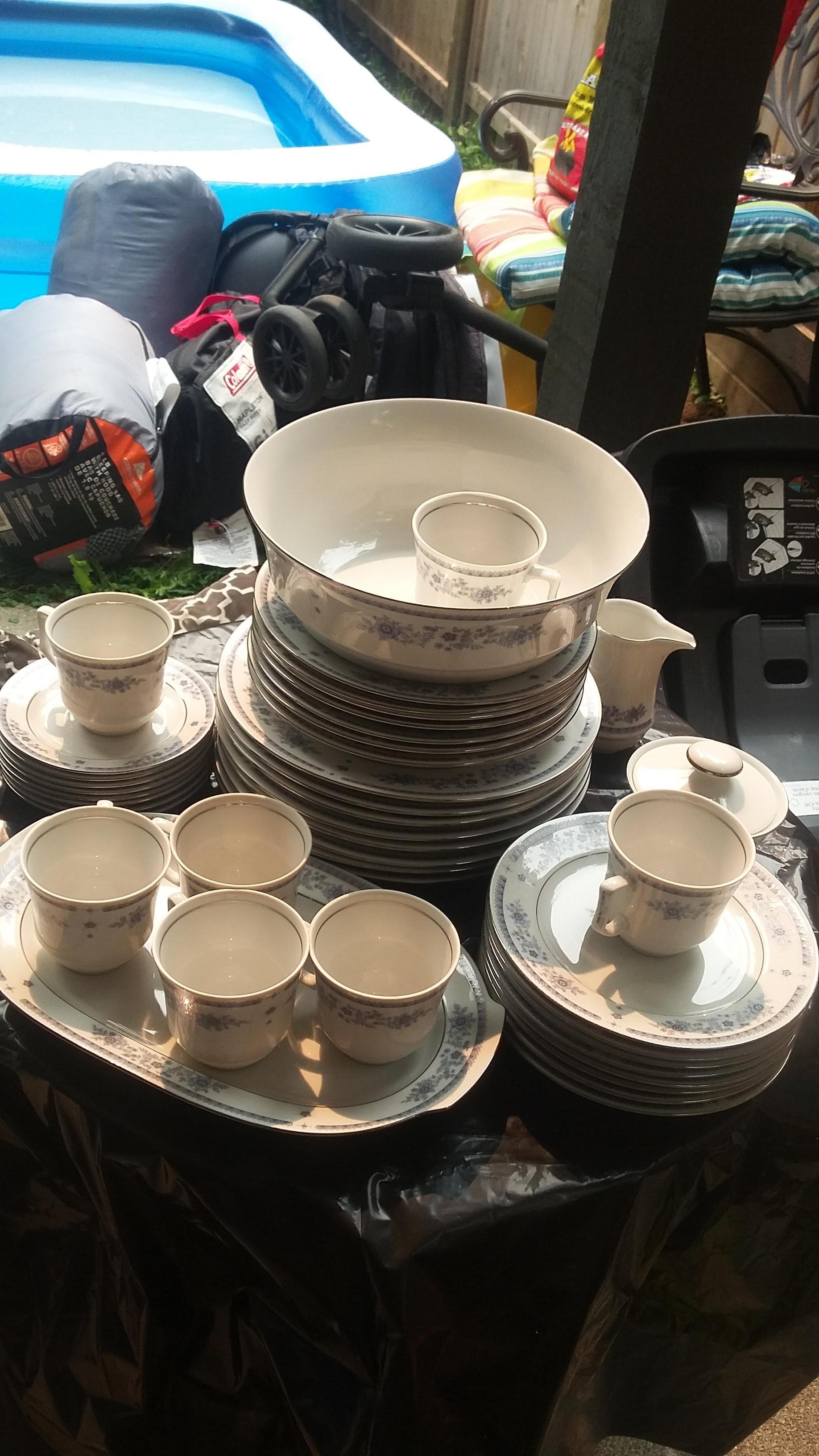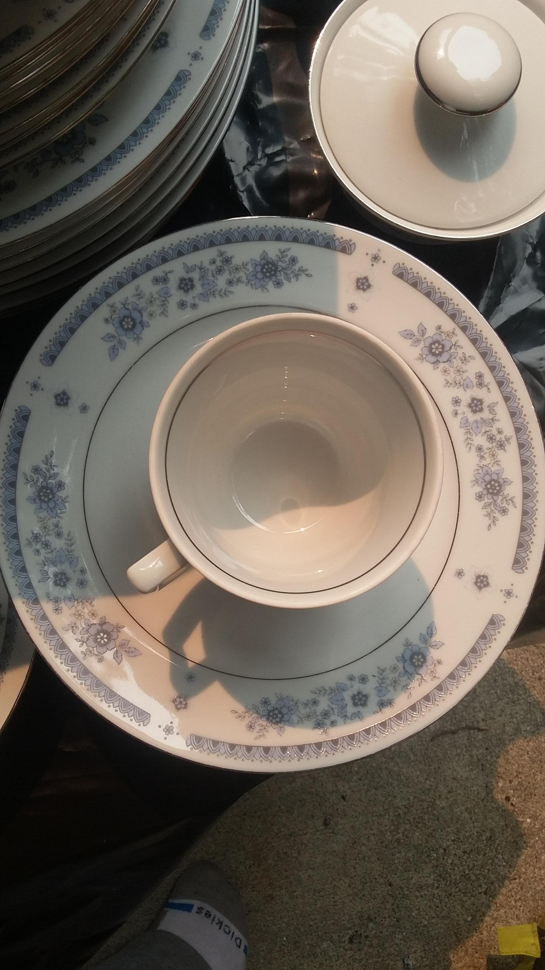 Full set 8 dinner , 8 bowls 7 tea cups 8 side plates 8 saucers sugar bowl cream container large salad bowl oval plate