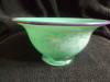 it is a yellow glass bowl probably hand blown with a one piece handle I would really like to know if it is worth anything or just how old it is