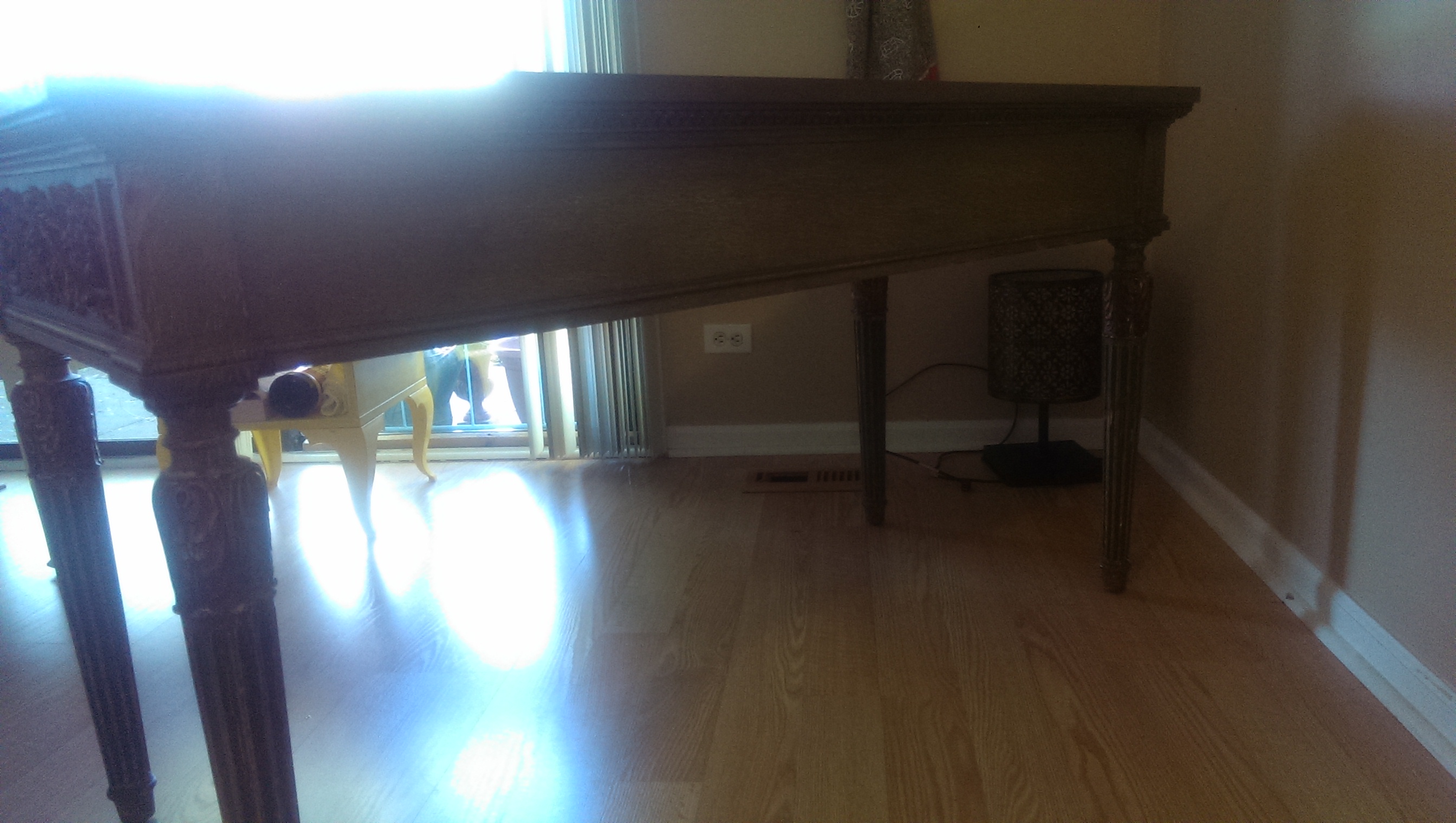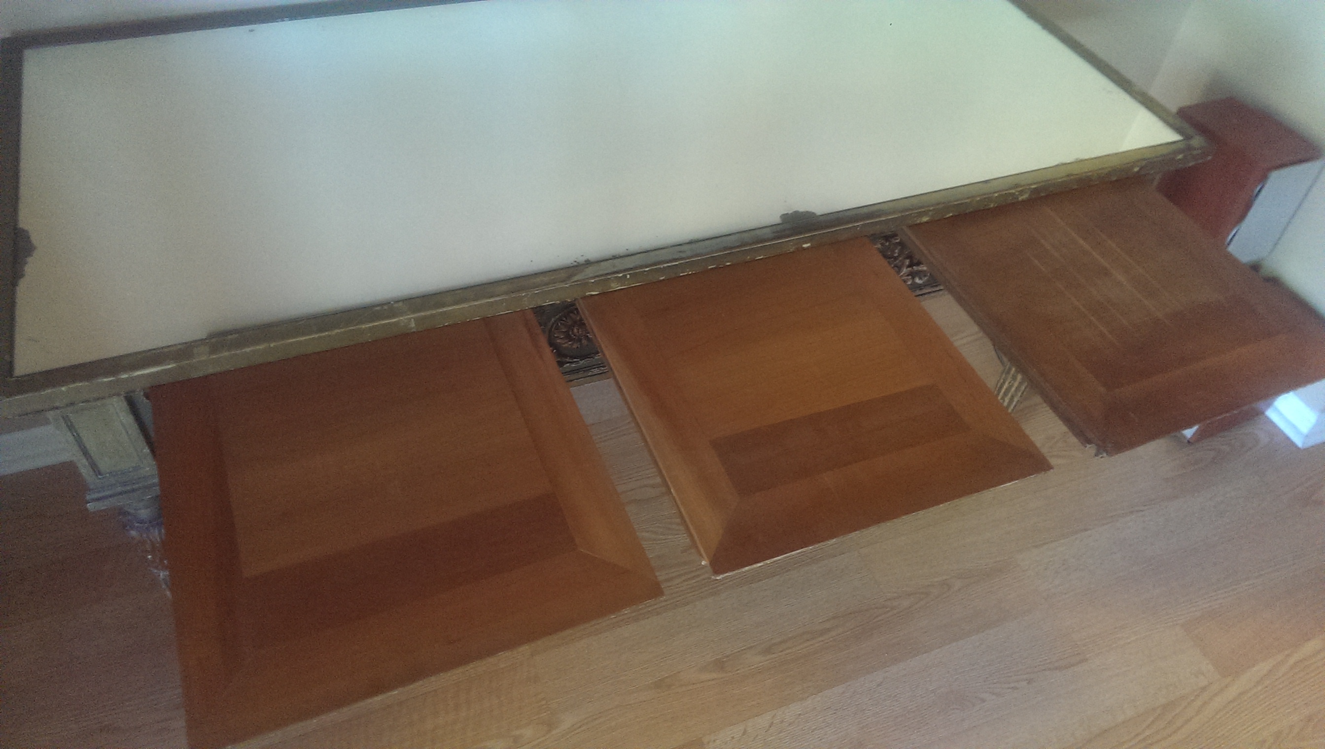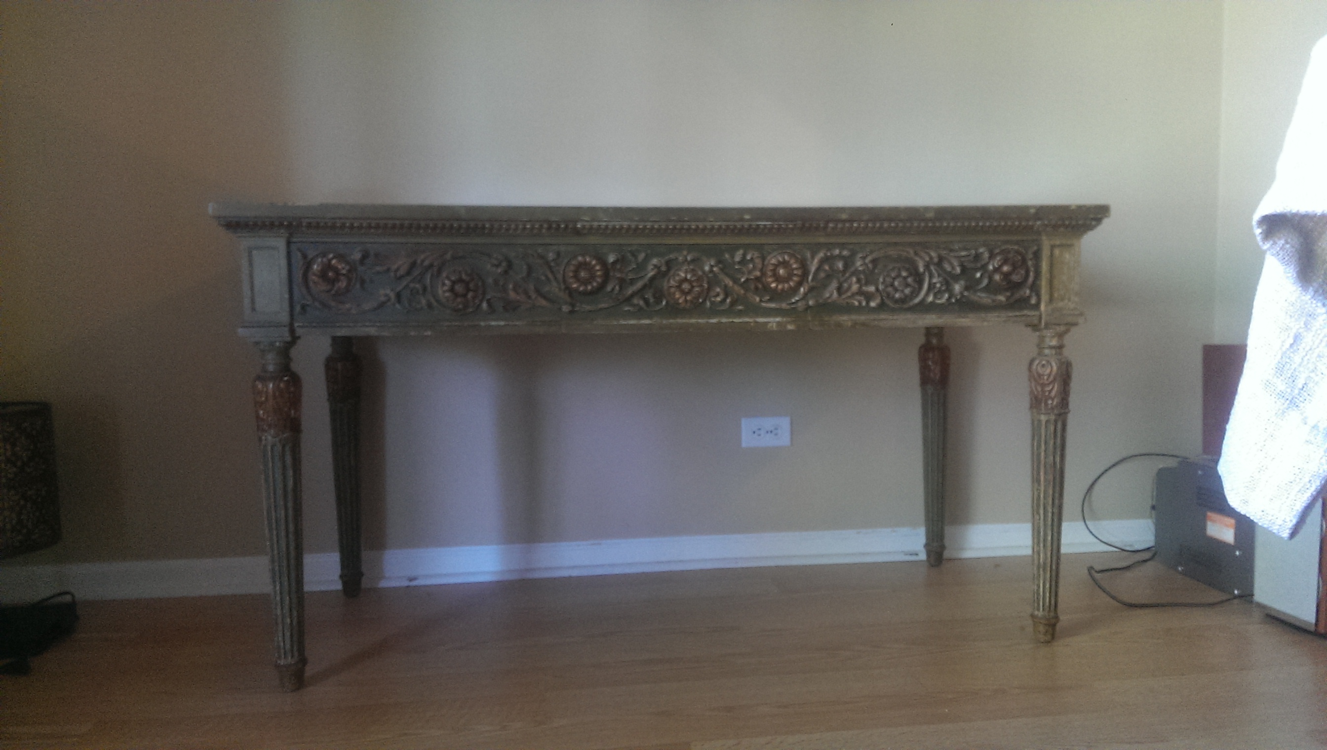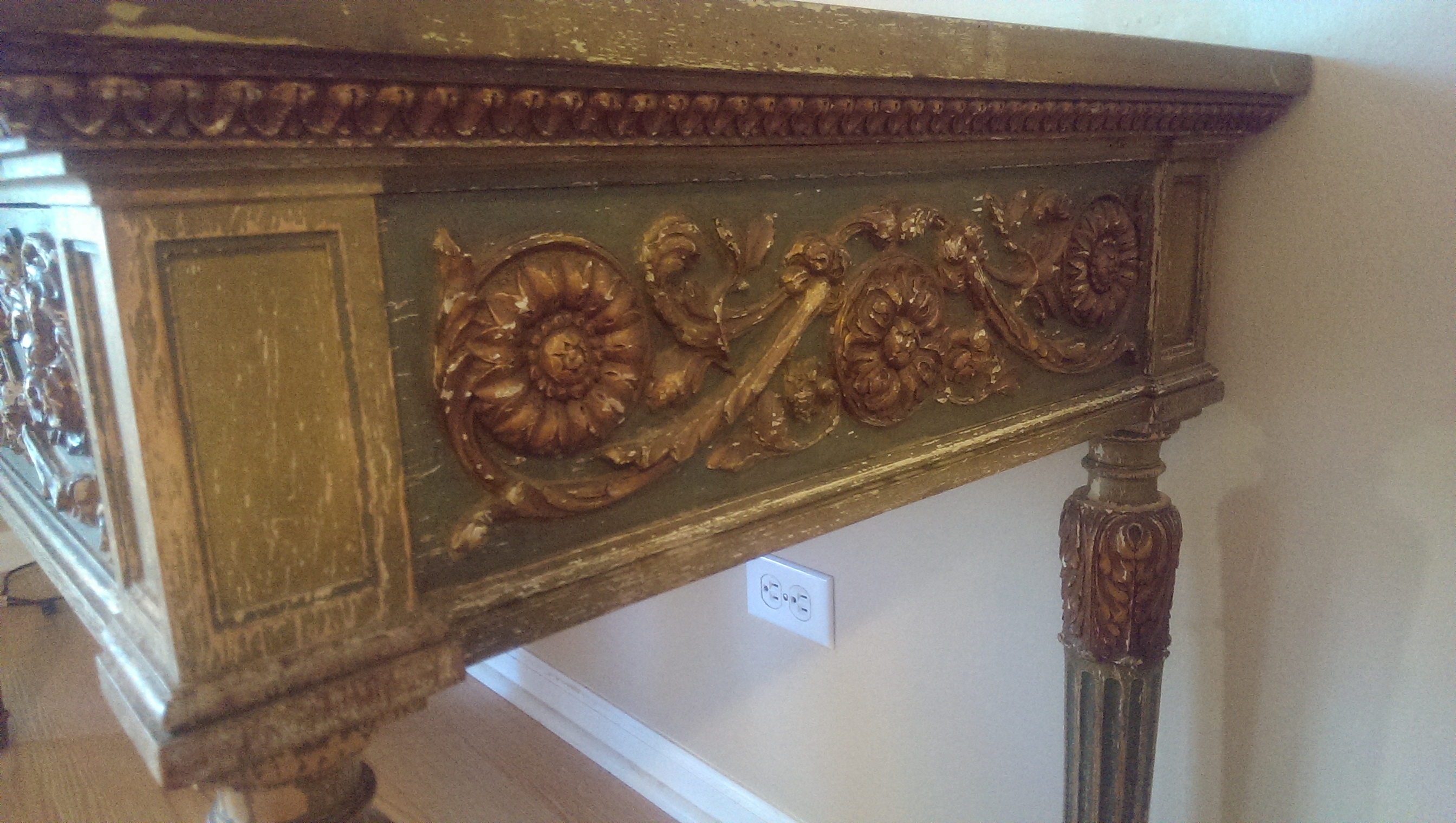 I would like to know more about this desk I inherited as I am not sure of its origin or approximate value and was hoping for some assistance.  No one in my family seems to know much about it exept that it is very very old.  It is in fantastic condition and is all original with a great natural greenish patina to it.  The top has a mirrored glass finish that is original as well.  All hand crafted with very little wear for it's age.  There are 3 drawers and 3 wood extensions that slide out.  Pictures really do not do it justice.  There are no markings on it anywhere that would provide a hint of where it comes from. Any help would be greatly appreciated.