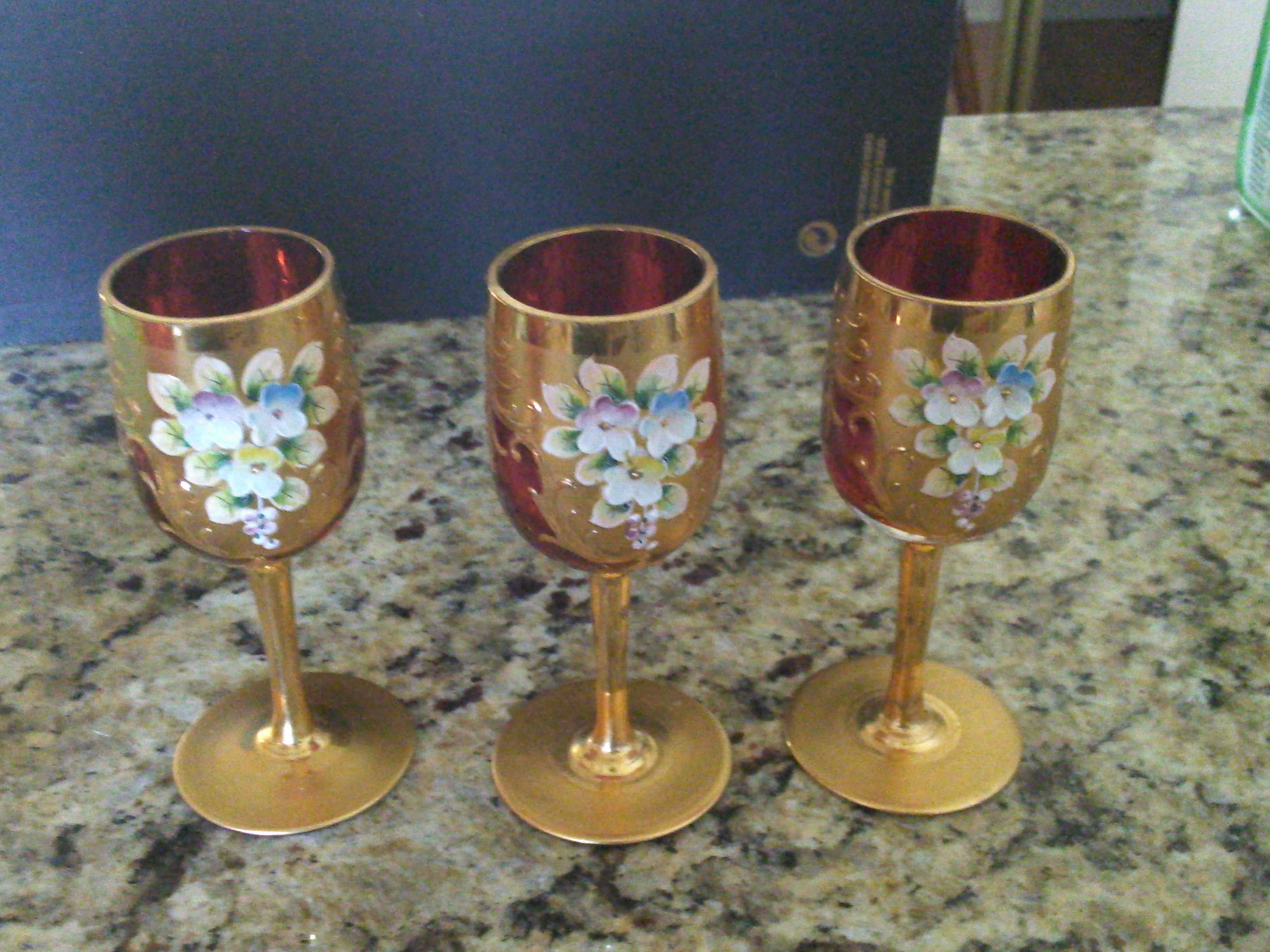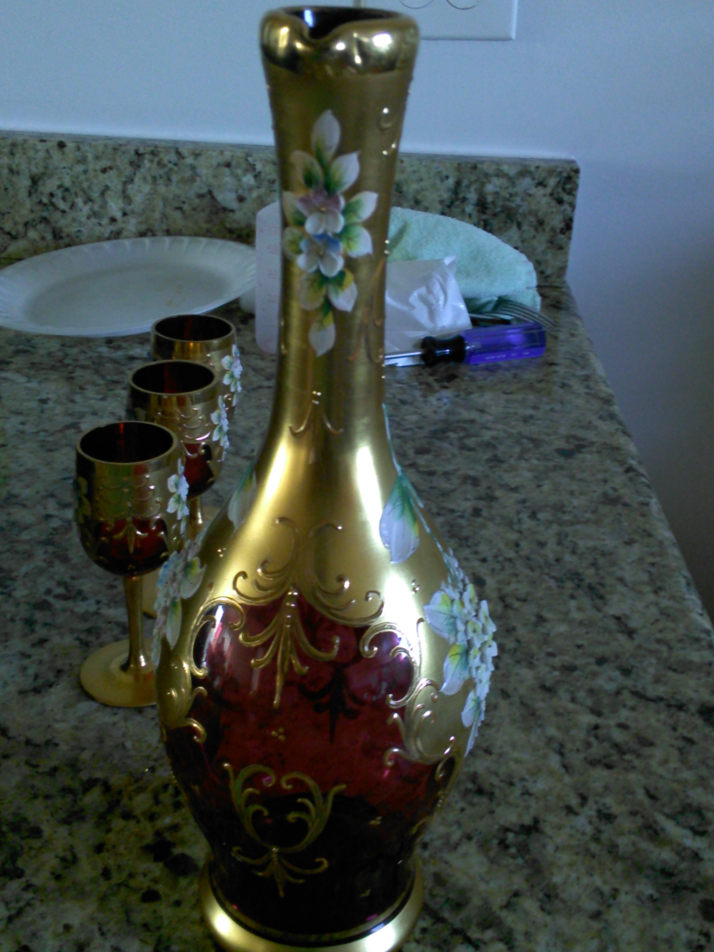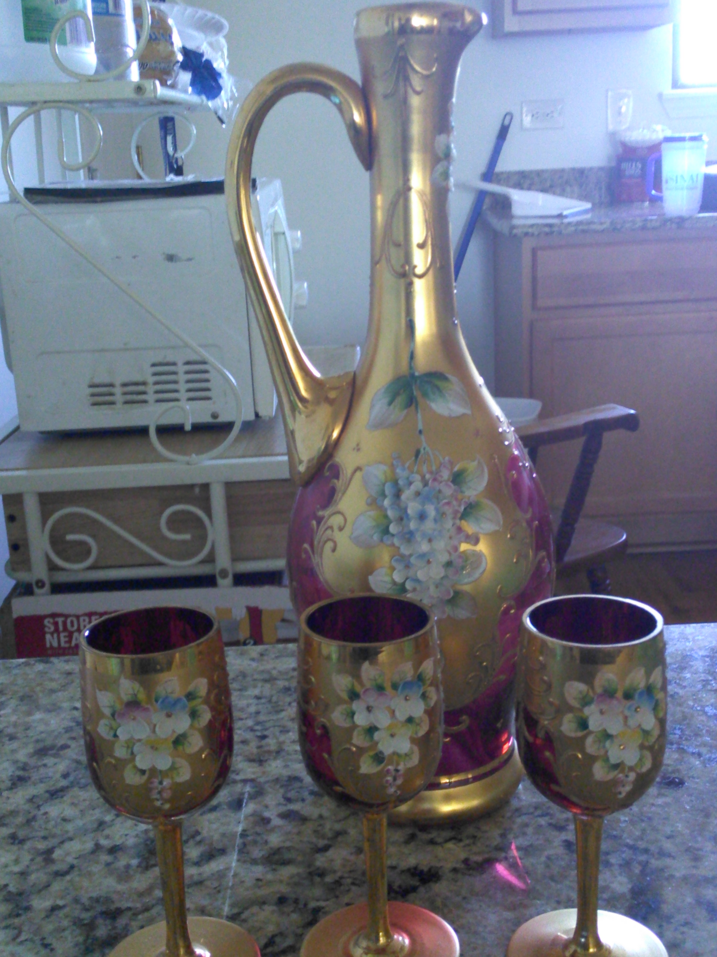 antique glass vase and cups