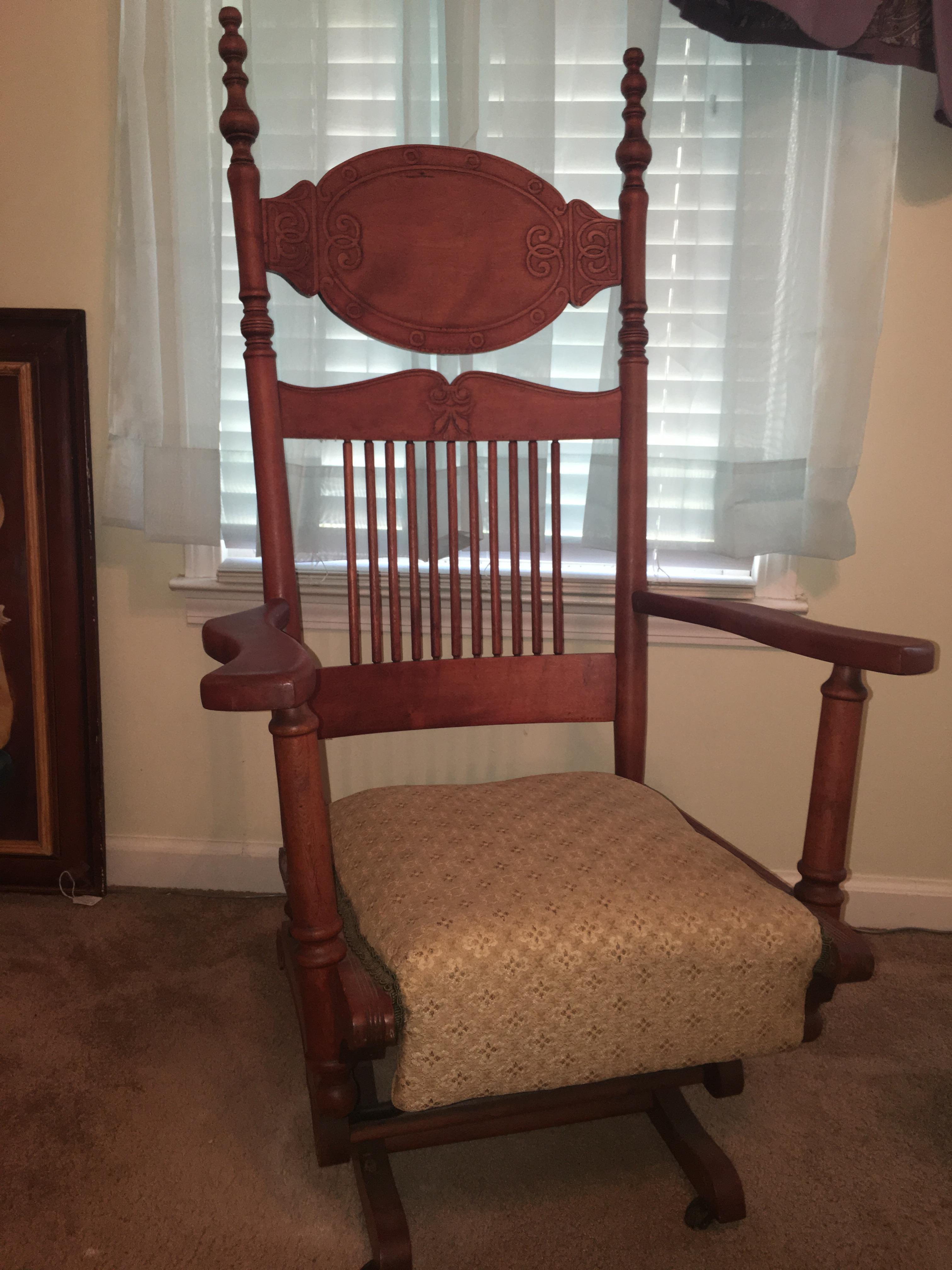 Appears to be oak? Glider Rocker Chair.