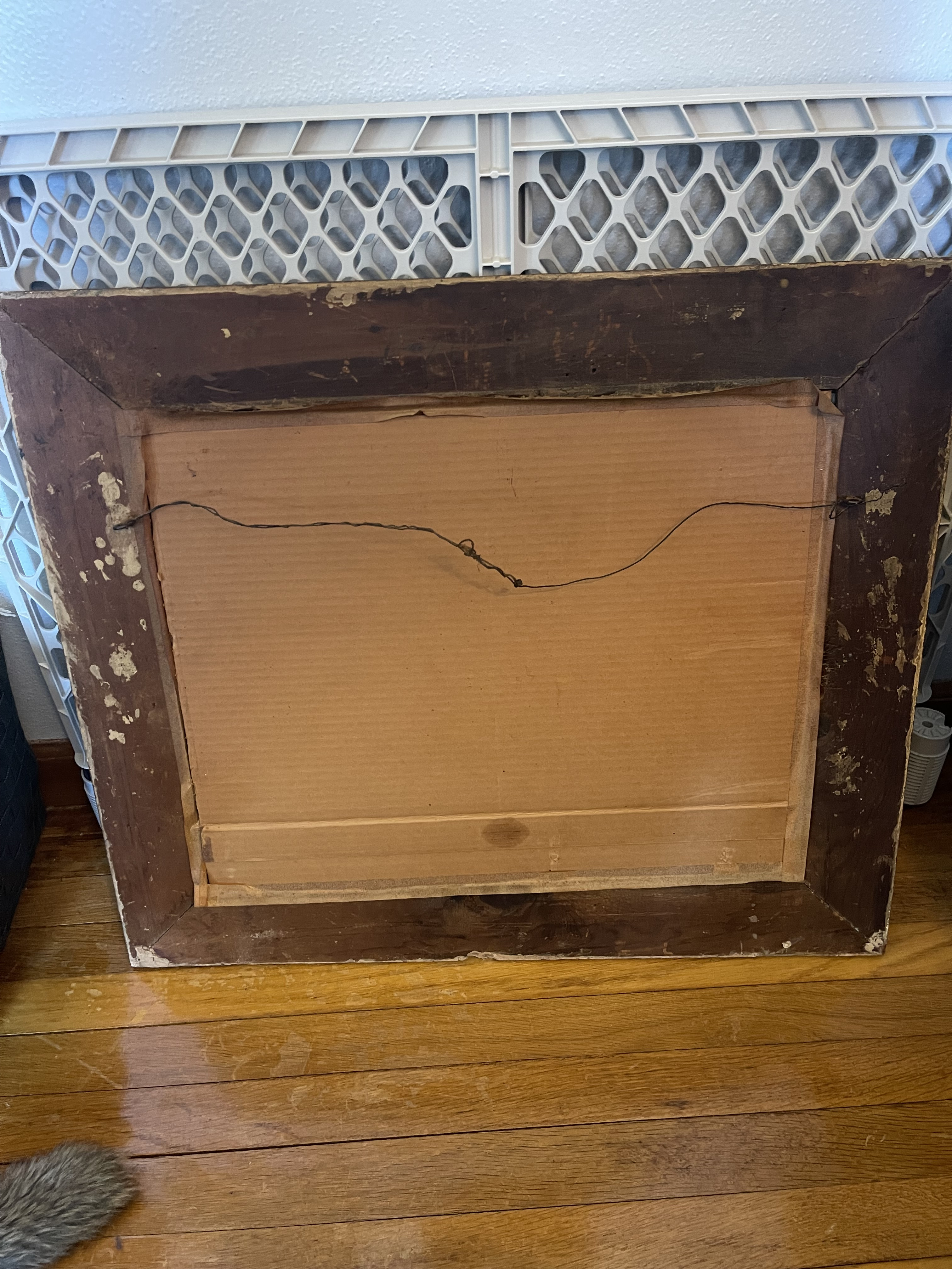 Look for any maker's marks or stamps on the back or corners of the frame. The presence of old hardware can indicate authenticity, but the absence of identifiable marks makes professional authentication advisable.