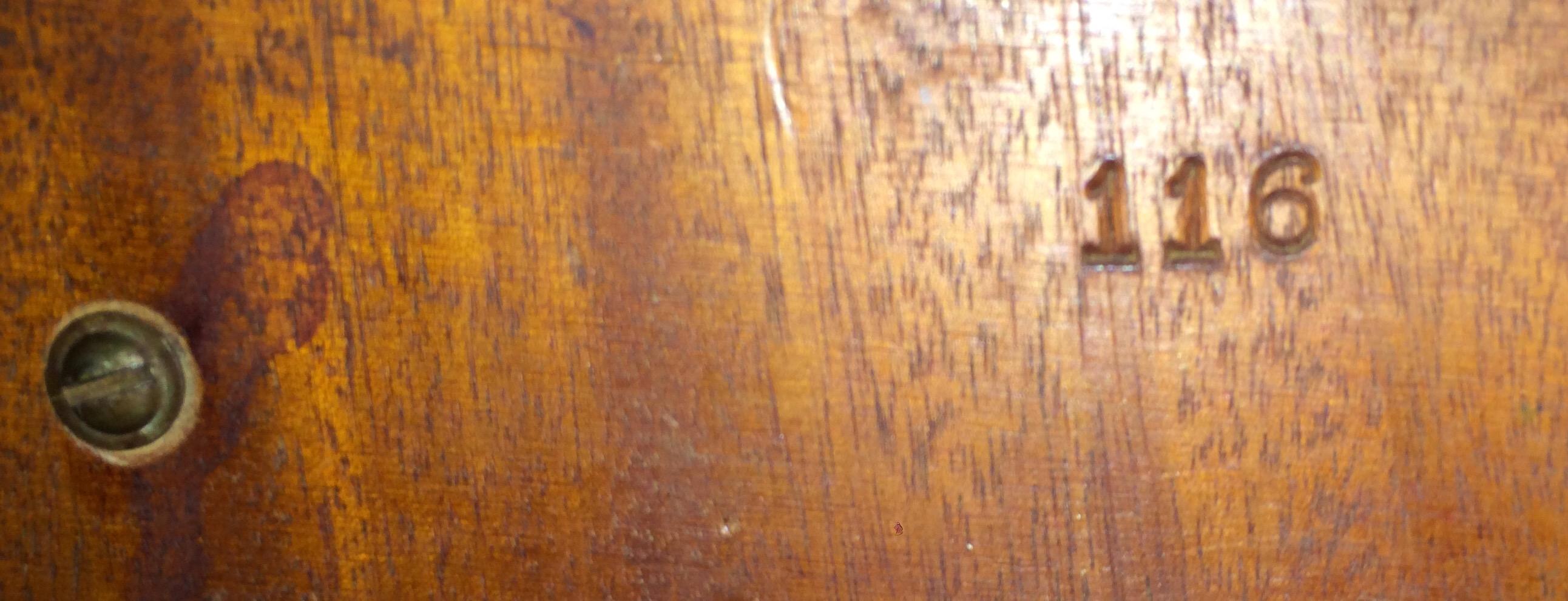 - The #116 engraved on the front backside of both drawls (left of the knob)