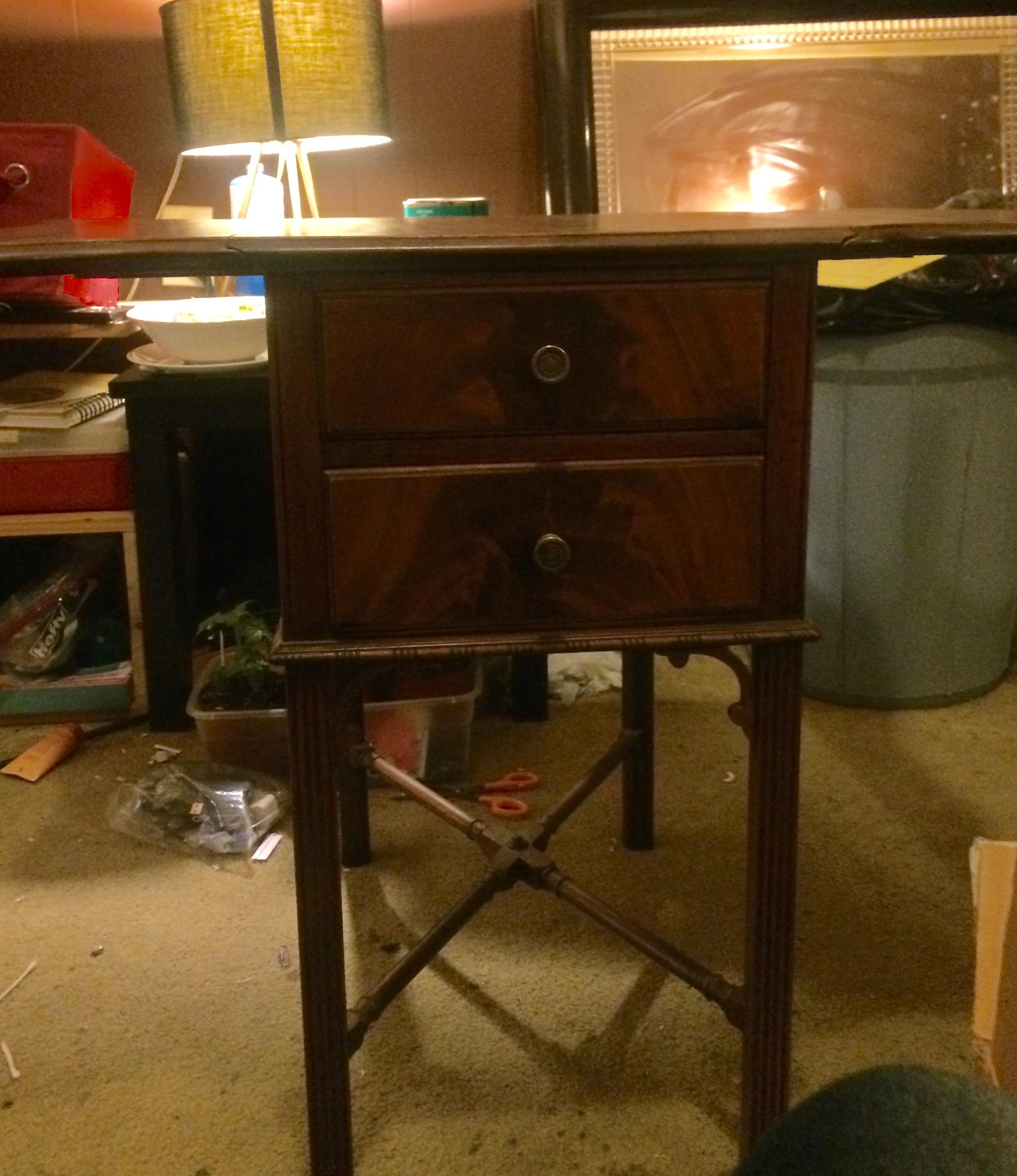 - 2 drawls on front (Top:3inch deep) (Bottom:4inch) both with a single brass knob