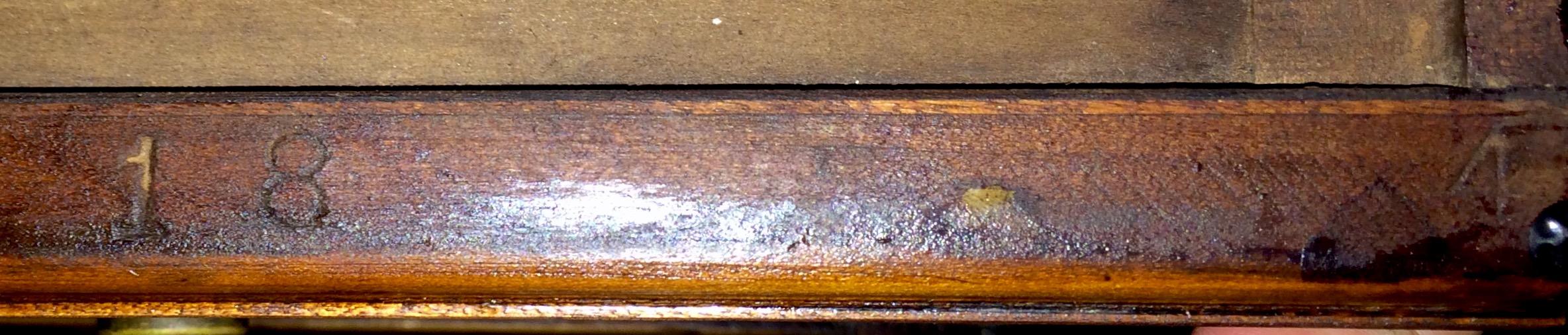 - The #18 engraved on the bottom front rim of both drawls (directly over the knob)