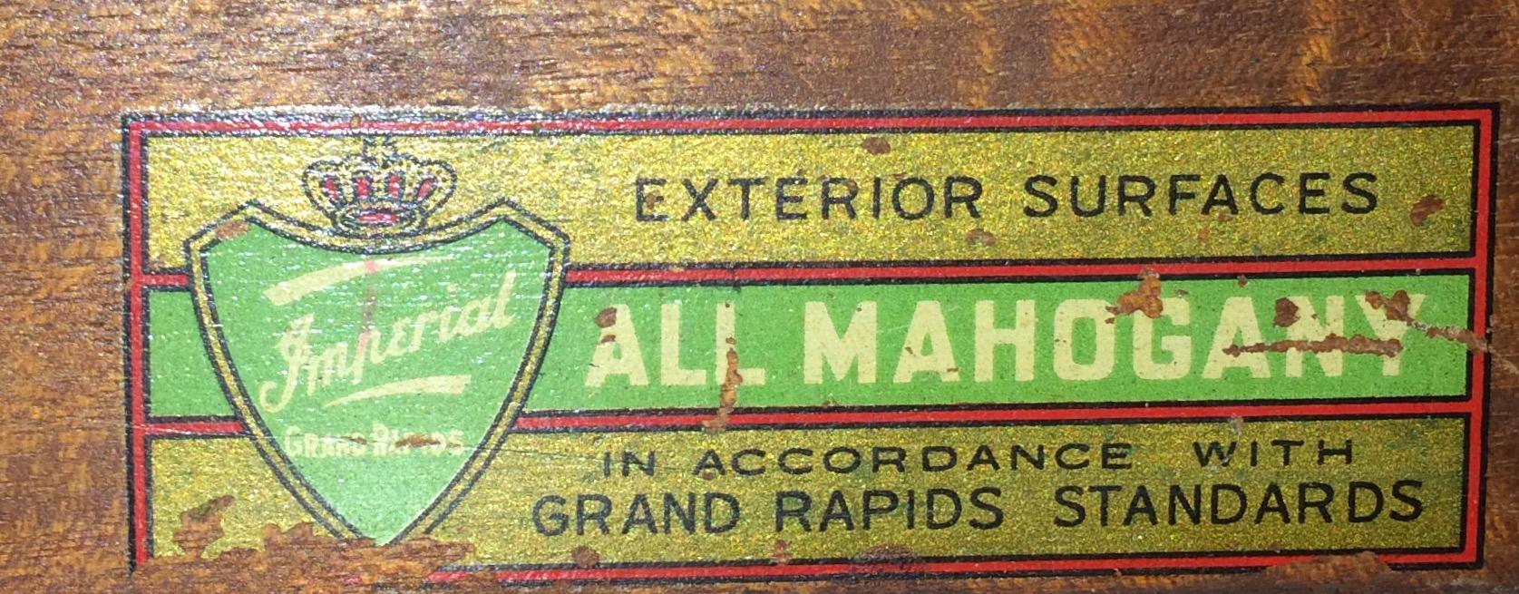- Imperial Grand Rapids stamp (inside top drawl) Reads: "