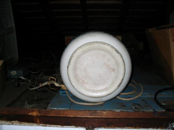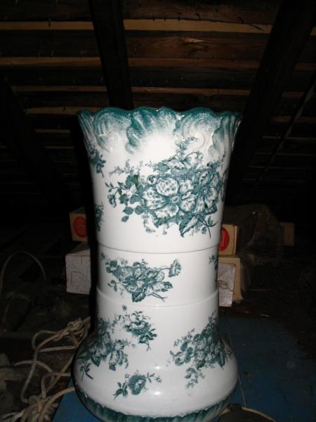 Umbrella stand green and white flowers going around in three bands excellent condition. no visible markings.