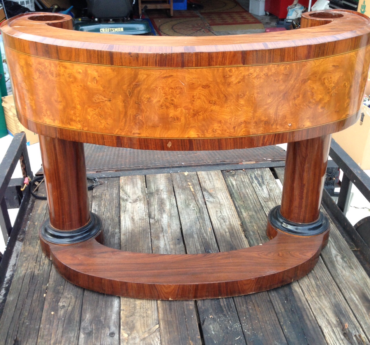 Thank you for responding! I appreciate your input. Do you have any idea what the two circular "cup holder" type things on the sides were used for? My only thought is for plants.