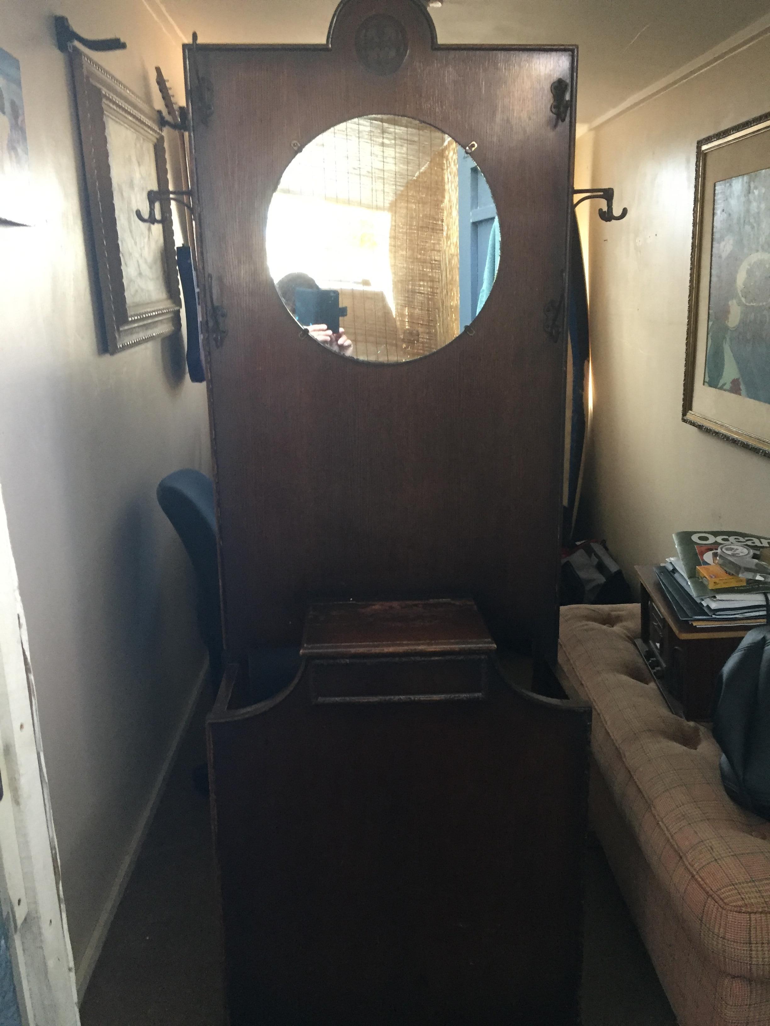Re: antique hall tree umbrella stand w storage original hooks...