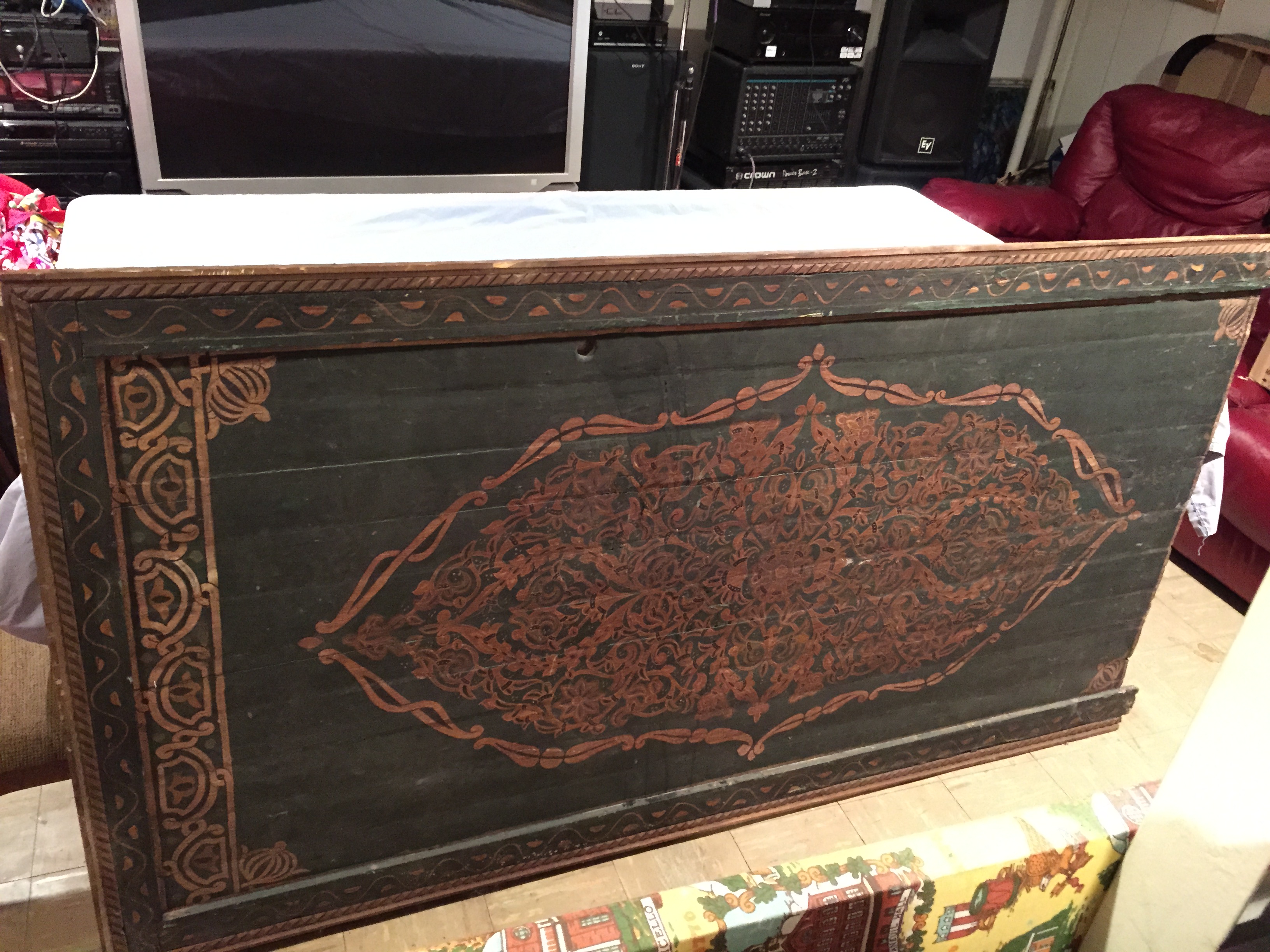 Re: Antique Hand painted, barn door with hand carved trim